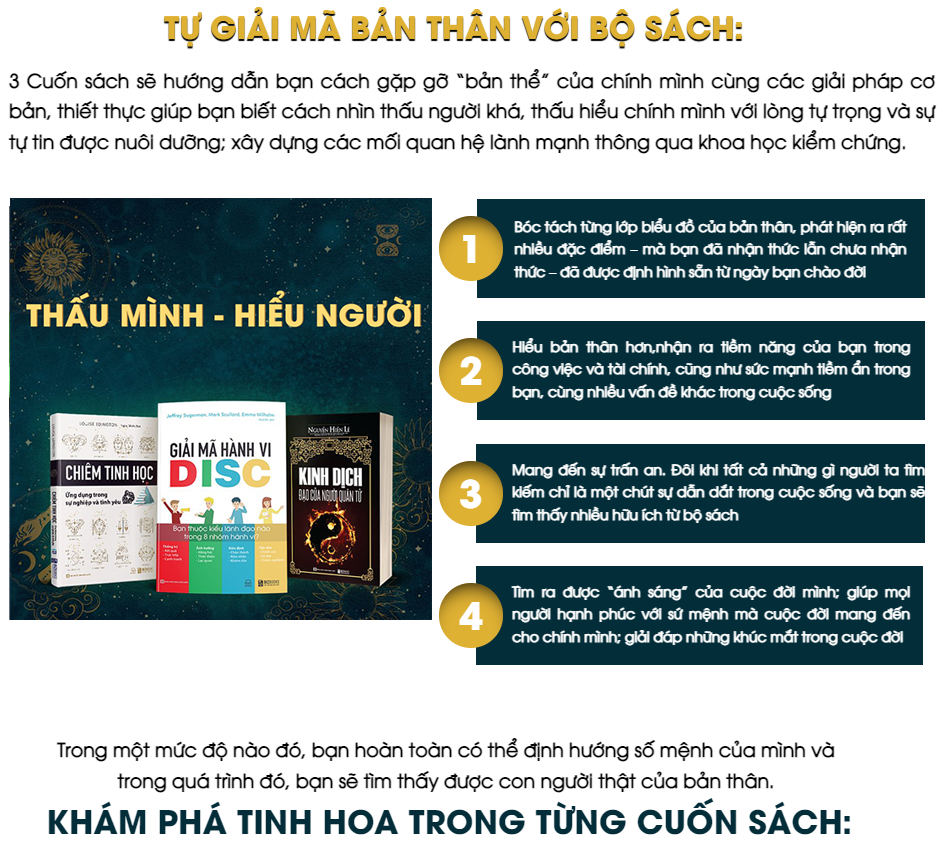 ✨Bộ Sách Tự Giải Mã Bản Thân: Kinh Dịch Đạo Người Quân Tử, Chiêm Tinh Học Ứng Dụng Trong Sự Nghiệp, Tình Yêu Và Giải Mã Hành Vi Bạn Thuộc Kiểu Lãnh Đạo Nào Trong 8 Nhóm Hành Vi?