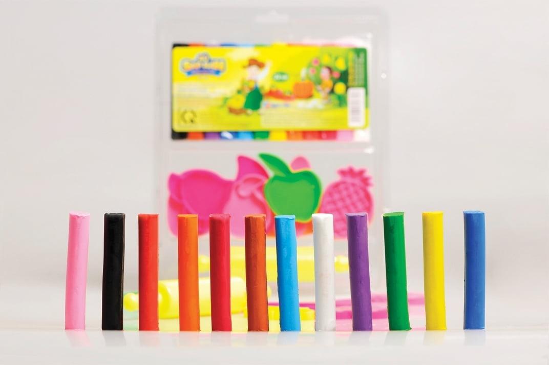 Bộ sản phẩm bao gồm 12 màu sáp nặn, dao cắt sáp, rulo cán nặn và bộ khuôn tạo hình cho sáp giúp các bé thỏa sức sáng tạo. Màu sắc tươi sáng, theo đúng