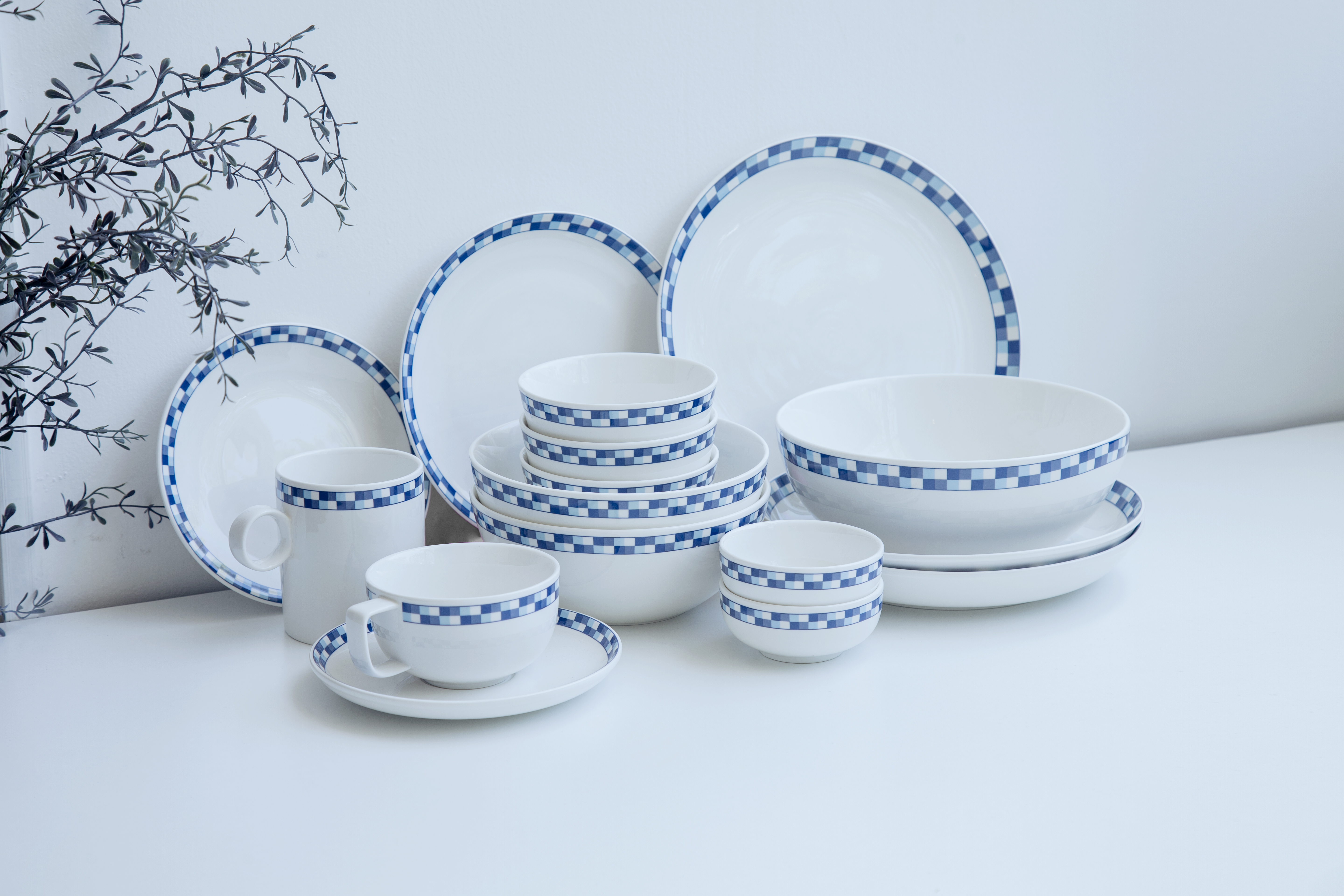 Bộ chén bát đĩa CHECK gồm 10 sản phẩm đồng nhất thiết kế, khác kích thước, kiểu dáng và công năng sử dụng để dễ dàng lựa chọn đúng nhu cầu của mỗi bữa ăn, bữa tiệc.