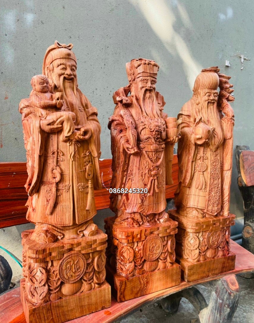 Bộ tượng tam đa phúc lộc thọ cao từ 30cm đến 60cm gỗ hương nguyên khối