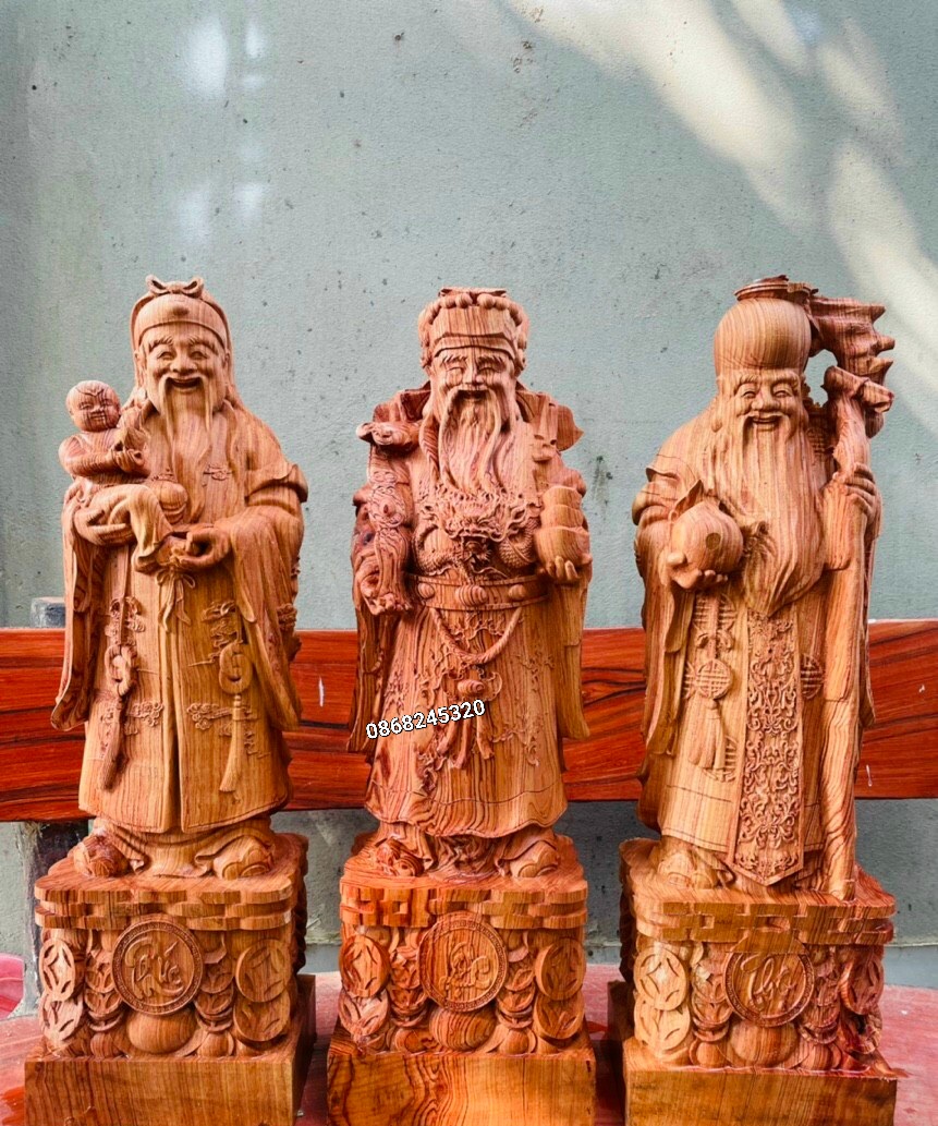 Bộ Phúc Lộc Thọ Tam Đa cao 30cm gỗ bách xanh 2tr200k