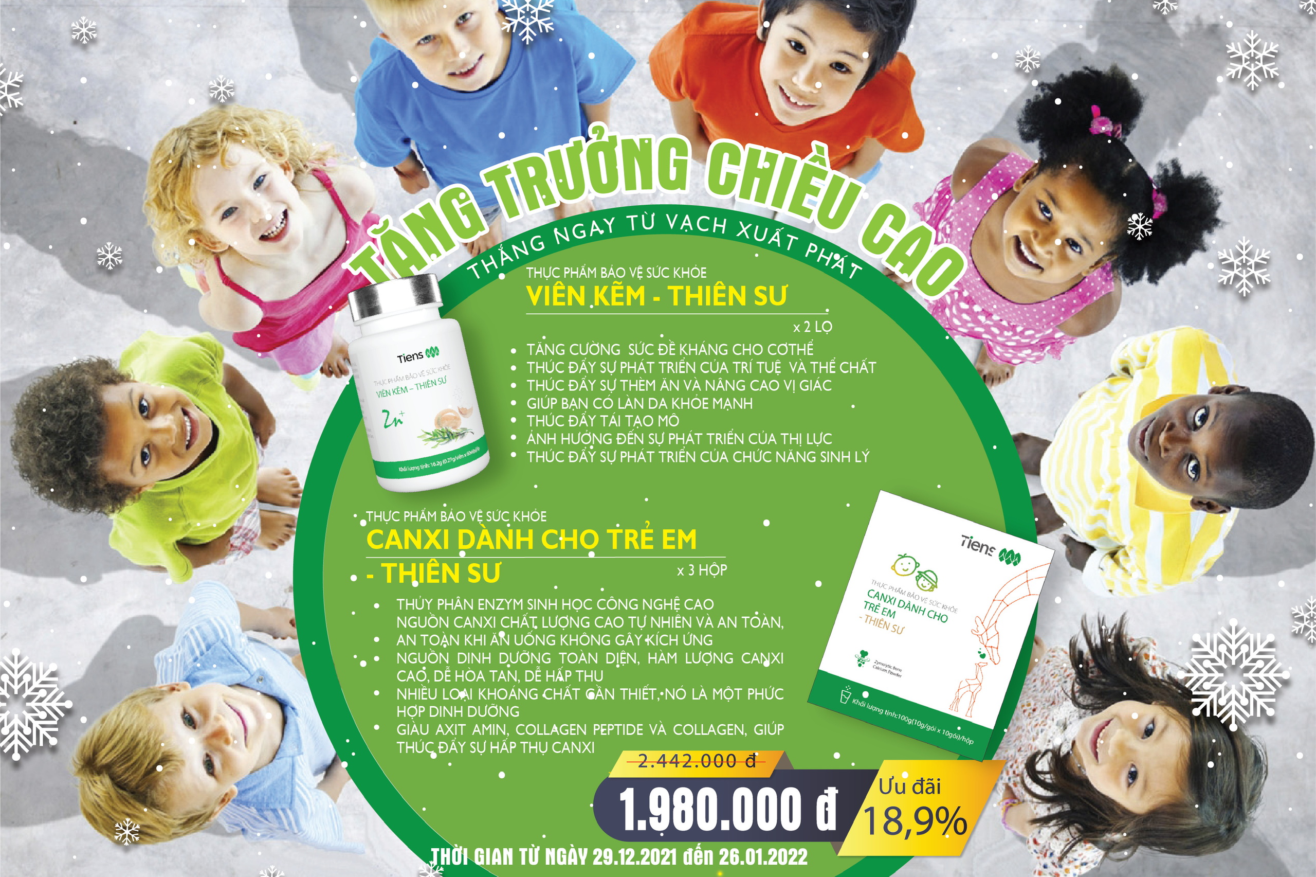 Canxi trẻ em Quy cách: 100g (10g x 10 gói)/ hộp. Công dụng: Giúp bổ sung canxi, hỗ trợ làm chắc xương, răng chắc khỏe, hỗ trợ phát triển chiều cao Đối tượng sử dụng: Trẻ em cần bổ xung canxi. Cách dùng: Trẻm em từ 1-9 tuổi mỗi ngày uống 1 lần, từ 10-18 tuổi mỗi ngày uống 1-2 lần, mỗi lần 1 gói, hòa với 150ml nước ấm (60 – 70°C) để uống hoặc trộn với thức ăn để ăn. Kẽm Quy cách: 16,2g (0.27g x 60 viên)/ lọ. Thành phần: Đường Glucose, Bột lòng trắng trứng gà, chất Zinc lactate, Bột Talc, Magnesium Stearate vừa đủ 1 viên Công dụng: Hỗ trợ bổ sung kẽm cho cơ thể, hỗ trợ tăng cường sức đề kháng Đối tượng sử dụng: Người cần bổ sung kẽm và tăng cường sức đề kháng cho cơ thể Cách dùng: Trẻ 3-10 tuổi ngày uống 2 lần, mỗi lần 2 viên. Người trên 10 tuổi ngày uống 2 lần, mỗi lần 4 viên
