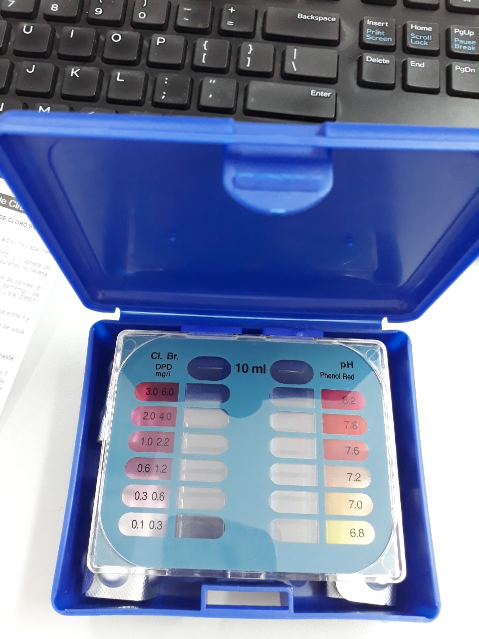 - Sản phẩm hộp test nước cho bể bơi gồm các 2 lọ dùng để pha trộn mẫu nước và thuốc viên, khi thử với nước bể bơi sẽ khiến nước đổi màu. Sau khi nước đổi màu mang đi so sánh với mảng màu tương ứng có sẵn, tùy vào màu sắc cũng như độ an toàn cho phép mà điều chỉnh độ pH sao cho phù hợp và an toàn với sức khỏe nhất. Bộ dụng cụ để kiểm tra nước hồ bao goomg: 2 ống nghiệm Bảng màu có ký hiện độ PH và CL 40 vên thuốc thử: gồm 20 viện Cl và 20 viên PH Lưu ý: một lần dùng 1 viên/ mỗi loại Cách nhận biết nước bể bơi có đảm bảo hay không Nếu bể bơi có mùi hóa chất, mùi clo khó chịu và nồng, nghĩa là nước đã được xử lý không tốt. Màu nước đục có nghĩa độ pH vượt quá cao. Quan sát đáy hồ xem có nhiều tảo, rong rêu không Dựa vào lượng người bơi, người bơi càng đồng thì nước càng ô nhiễm và ngược lại. Bể bơi không đạt tiêu chuẩn là nguyên nhân hàng đầu gây ra bệnh cho con người, nếu không khử trùng kỹ gây ra bệnh tiêu chảy hay viêm kết mạc ở mắt. Còn nếu bể bơi chứa quá nhiều chất khử trùng gây kích ứng da vì nồng độ pH và clo quá thấp Do đó cần nhận biết tình trạng của bể bơi để cân bằng độ pH của bể, một bể bơi đảm bảo độ pH trung bình khoảng 7,2-7,8 Hai chỉ tiêu quan trọng nhất đối với xử lý nước cho hồ bơi: Độ clo dư trong nước: từ 0.4 đến 1ppm Độ pH: từ 7,2-7,6 Độ kiềm : từ 50 đến 100mg/lít Độ cứng caxi: 200mg/lít Nước trong, không mùi vị lạ Chuẩn kali phải dưới 1% Axit cyanuric: 25-50 ppm Nhiệt độ nước không quá 20 0C- 26 0C Tổng chất rắng hòa tan TDS:<5000ppm Khi kiểm tra, sử dụng viên hóa chất trộn lẫn với nước bể bơi để kiểm tra sự thay đổi màu sắc, sau đó đối chiếu với bảng Khi kiểm tra, sử dụng viên hóa chất trộn lẫn với nước bể bơi để kiểm tra sự thay đổi màu sắc. sau đó đối chiếu với bảng màu tương ứng với mức độ pH và clo. Chúc bạn vui vẻ & có lựa chọn sản phẩm hợp lý nhất !