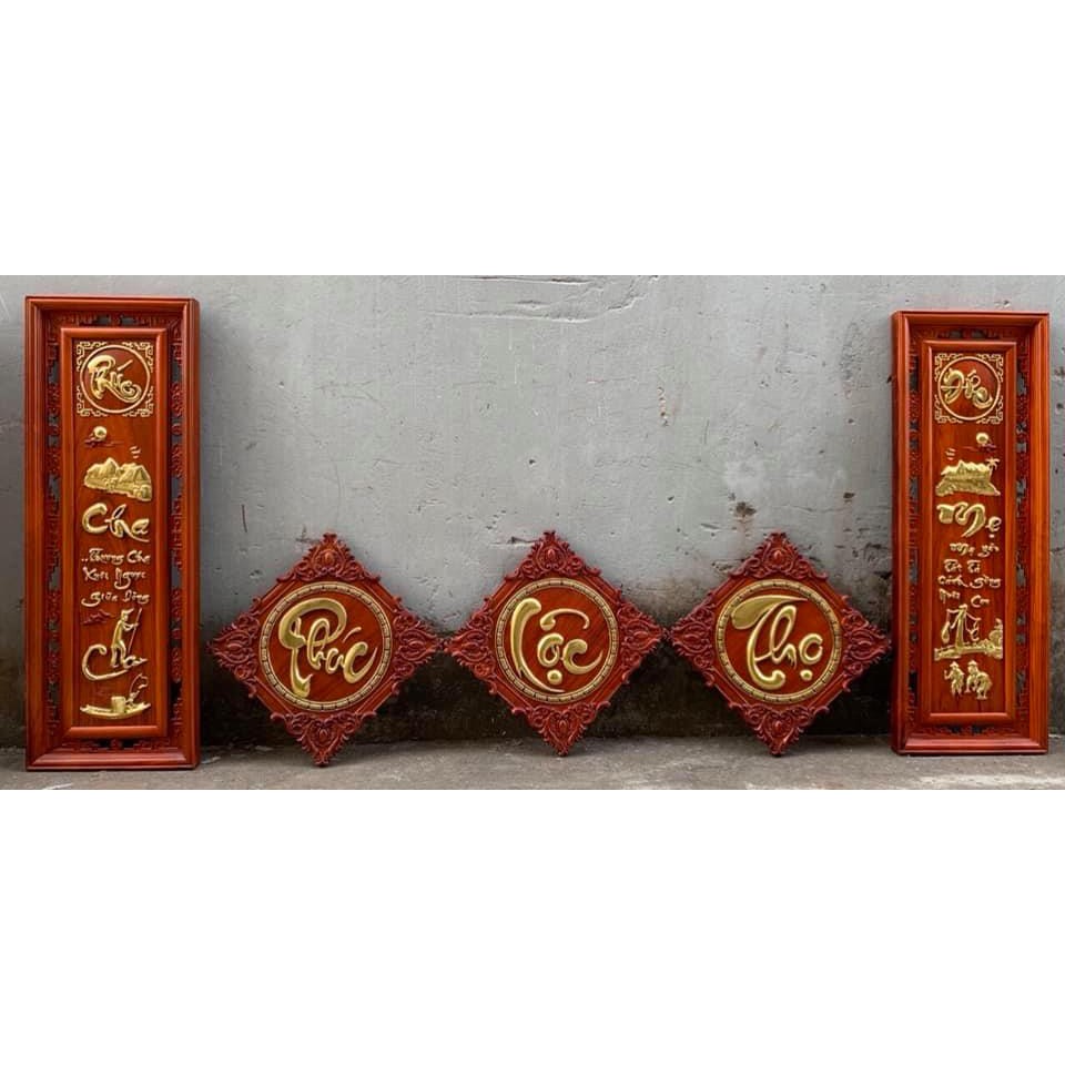 _Combo Tranh câu đối cha mẹ và tranh chữ 3 tấm phúc lộc thọ được làm bằng gỗ hương đỏ tự nhiên 100% Và được sơn pu dát vàng cao cấp  _ Kích thước tranh