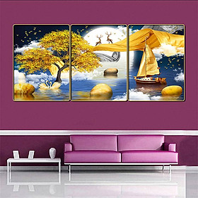Bộ 3 tranh treo tường phòng khách, phong cách hiện đại tráng gương 5D may mắn đến nhà cho gia chủ ☘️