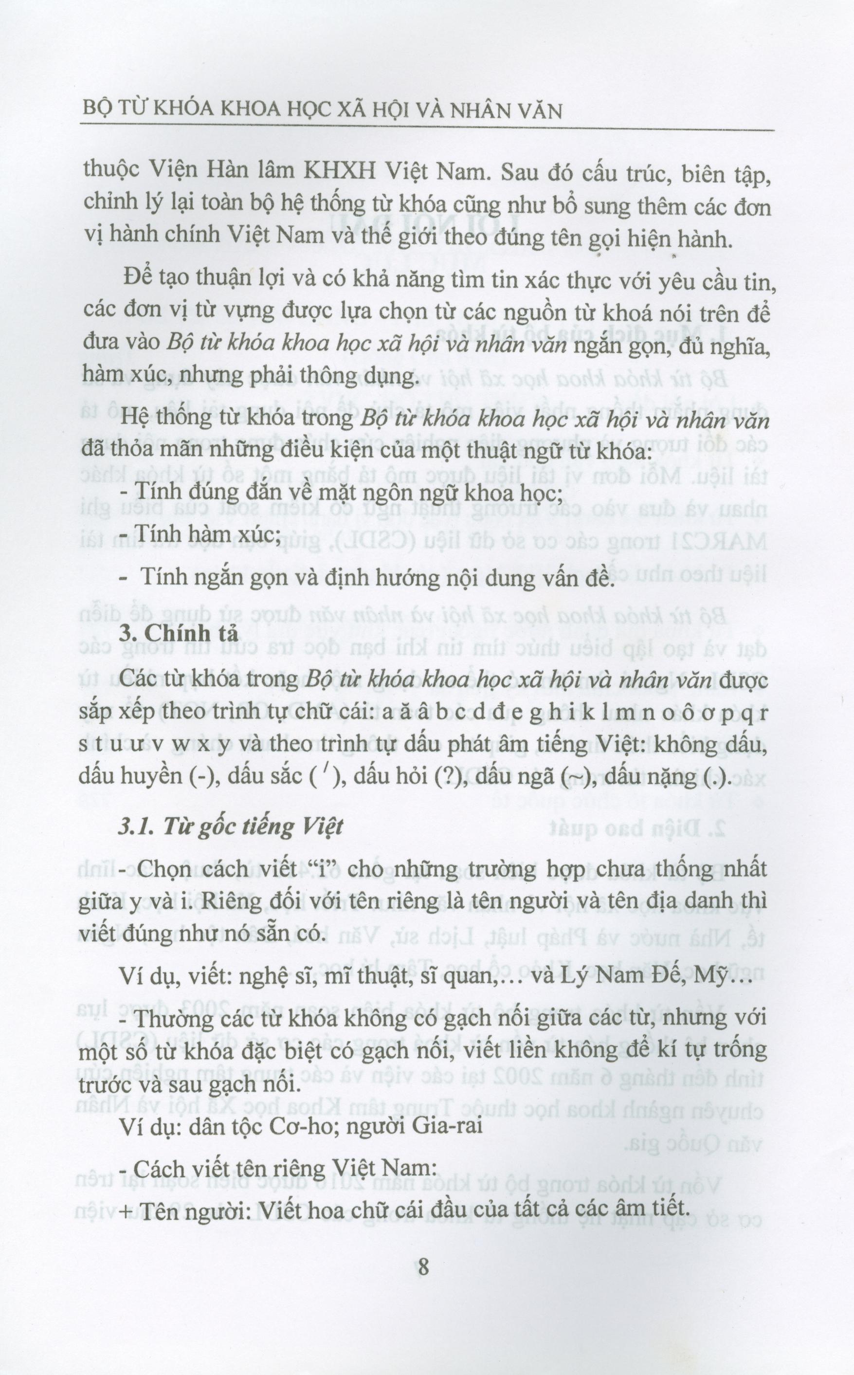Đây là bộ từ khóa được tập hợp lại trên cơ sở cập nhật hệ thống từ khóa trong các CSDL của 29 thư viện thuộc Viện Hàn lâm KHXH Việt Nam, có sửa đổi, biên tập lại và bổ sung.