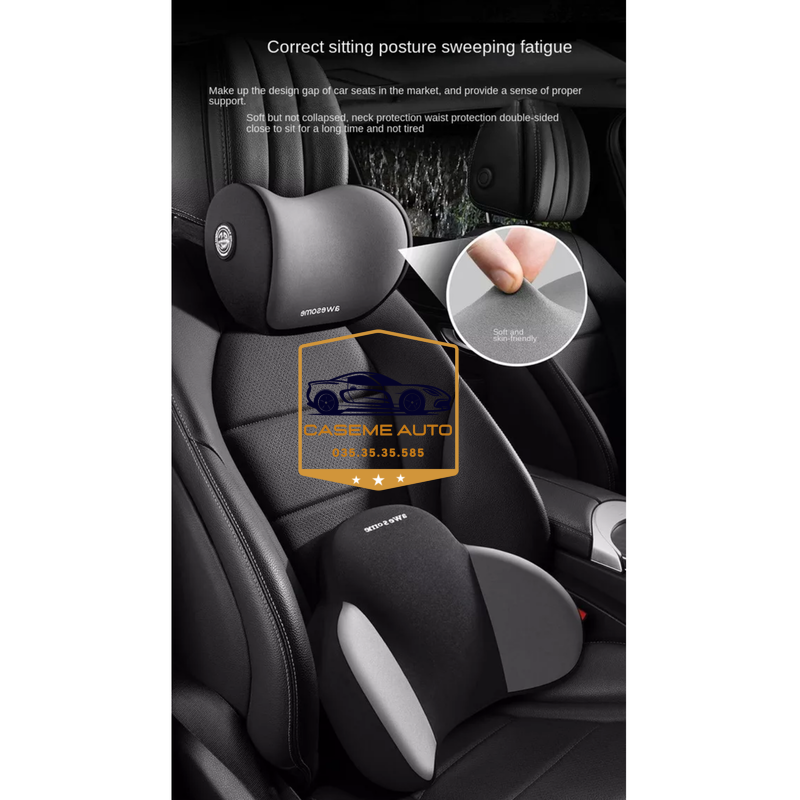 ✨Bộ Tựa Đầu Tựa Lưng AWESOME Cao Su Non Nguyên Khối - Gối Tựa Đầu Tựa Lưng Trên Ô Tô Vỏ Bọc Vải Cotton Không Xù - Hàng Nhập Khẩu