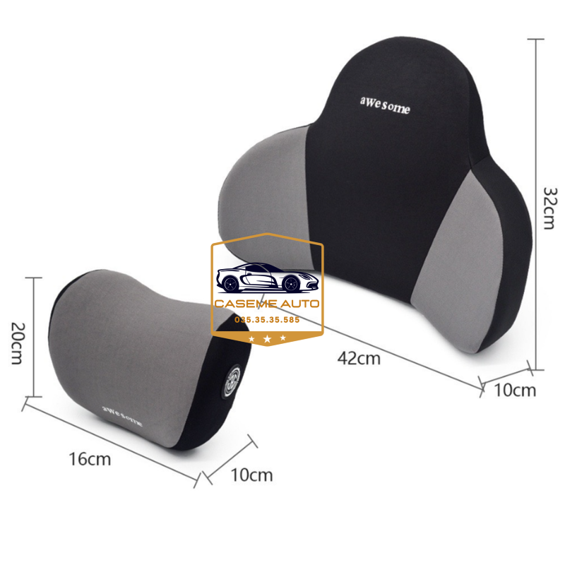 Gối tựa ô tô awesome, lõi cao su non vỏ vải co giãn, gối đầu ô tô, tựa lưng ô tô