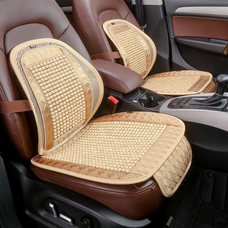 Tấm lót ghế và tựa lưng hạt gỗ massage cao cấp cho ô tô, xe hơi, xe khách, xe tải