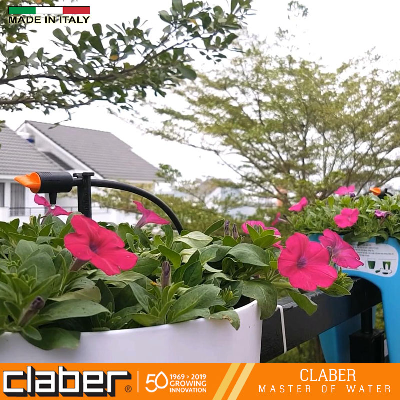 - Chân cắm định vị cho đầu tưới Claber Italy: 10 cái. Ngoài ra, bạn cũng có thể thoải sức sáng tạo và thoải mái mở rộng hệ thống khi cần thiết chỉ cần mua thêm các thiết bị của Thiết bị tưới.