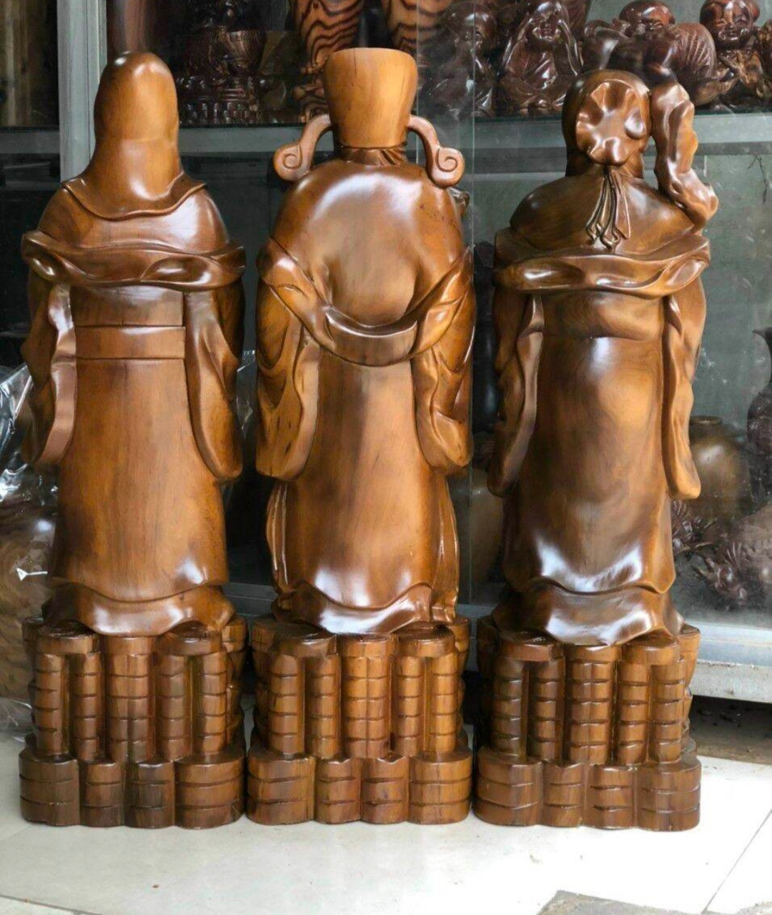 _ Tượng phật tam đa phúc lộc thọ được làm bằng chất liệu gỗ hương đá tự nhiên 100% .Và được tô làm bóng tô mầu giả cổ _ Kích thước cao 70×22×16cm _ Tượng