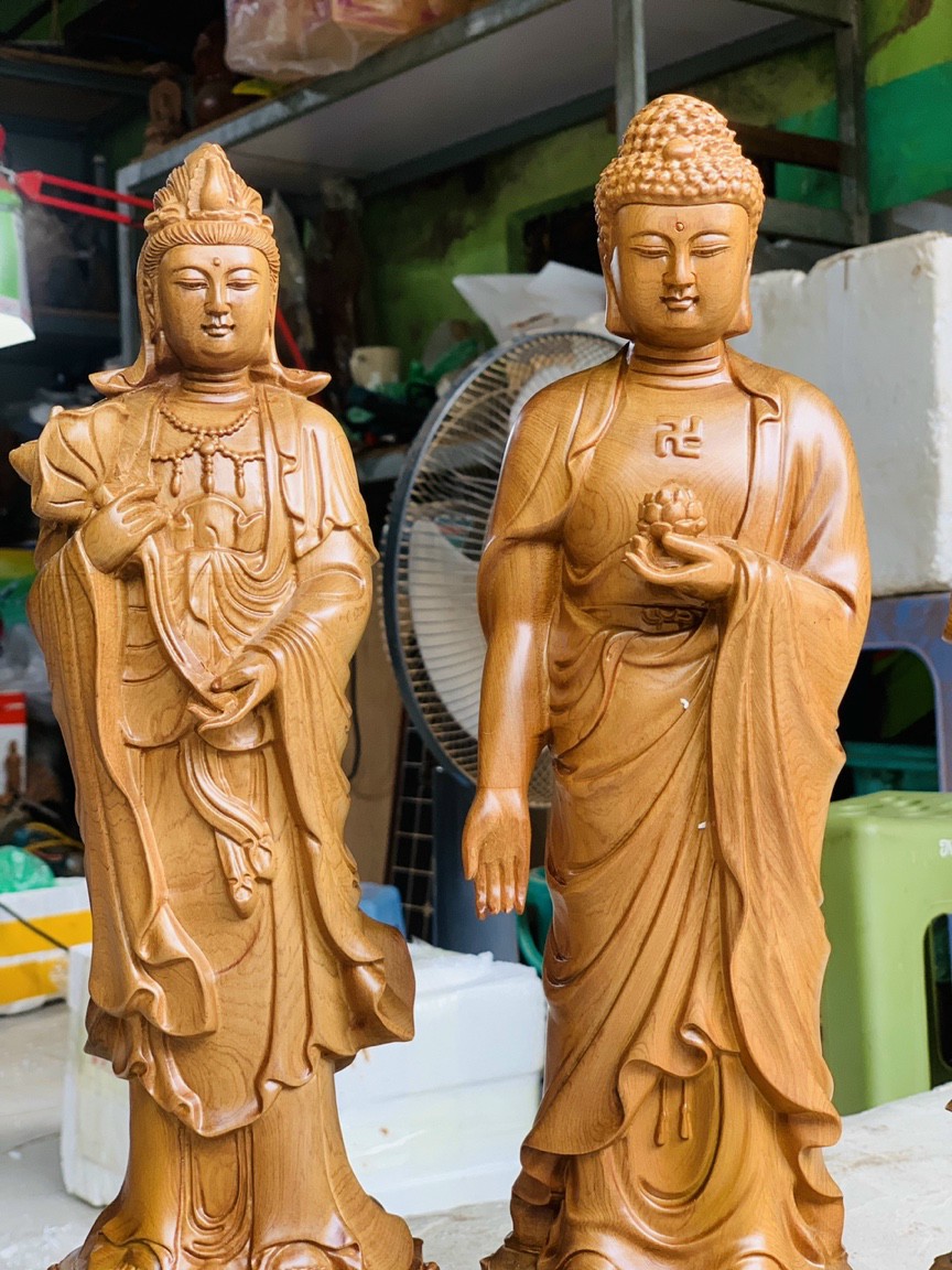 Bộ tượng phật tam thánh được làm bằng chất liệu gỗ bách xanh thơm nức tự nhiên 100% Kích thước cao 50×15×15cm _ Bộ tượng phật tam thánh được trạm khắc tỉ mỉ tinh sảo kỳ công .Được làm và hoàn thiện do bàn tay khối óc tài hoa .Từ những người thợ giàu kinh nghiệm .Cũng như tay nghề cao trong làng nghề truyền thống .Chính vì thế bộ tượng phật tam thánh đã đáp ứng đầy đủ những tiêu trí ( Đẹp bền rẻ ) Thẩm mỹ nghệ thuật với chất lượng tuyệt vời