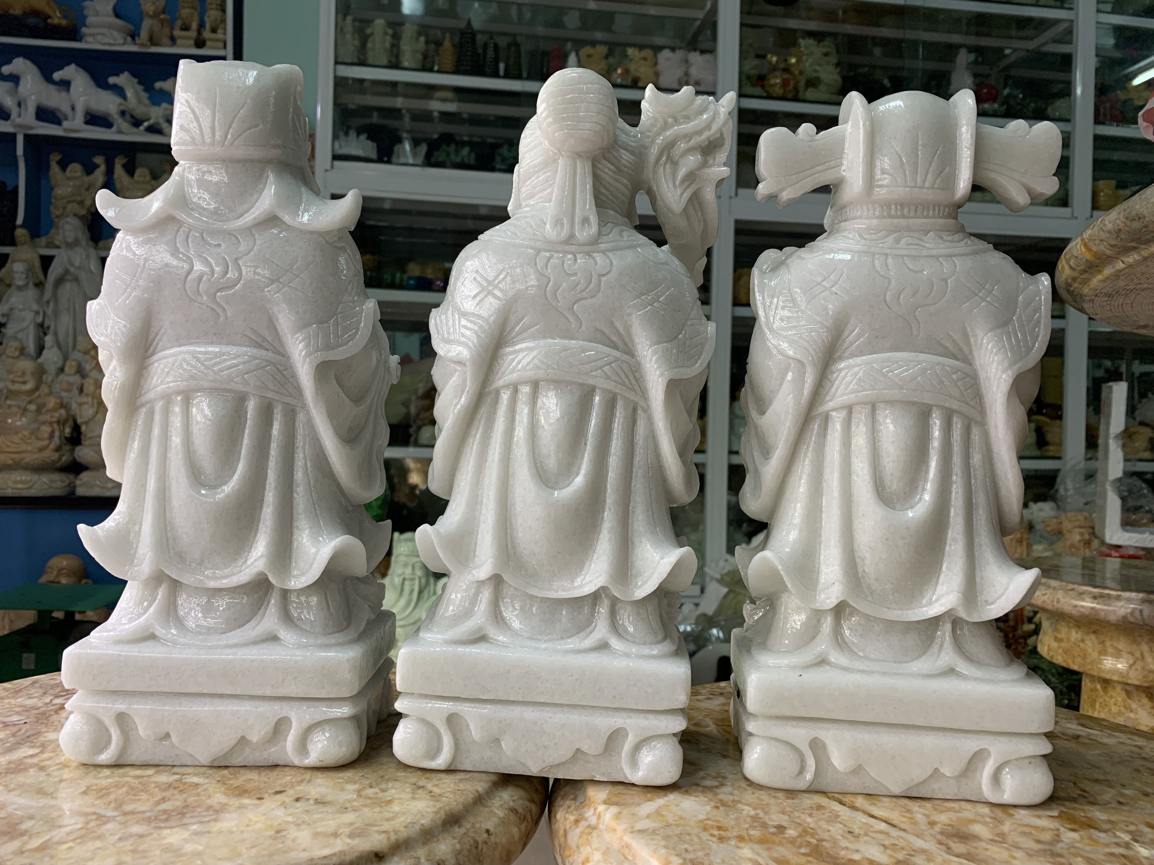 ✨Bộ Tượng Tam Đa (Phúc Lộc Thọ) Đá Cẩm Thạch Trắng - cao 30cm