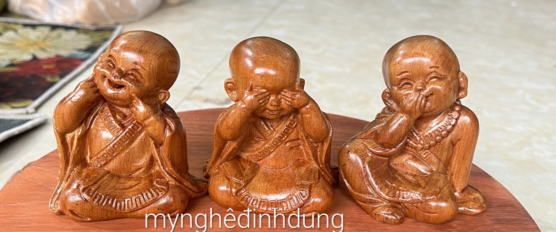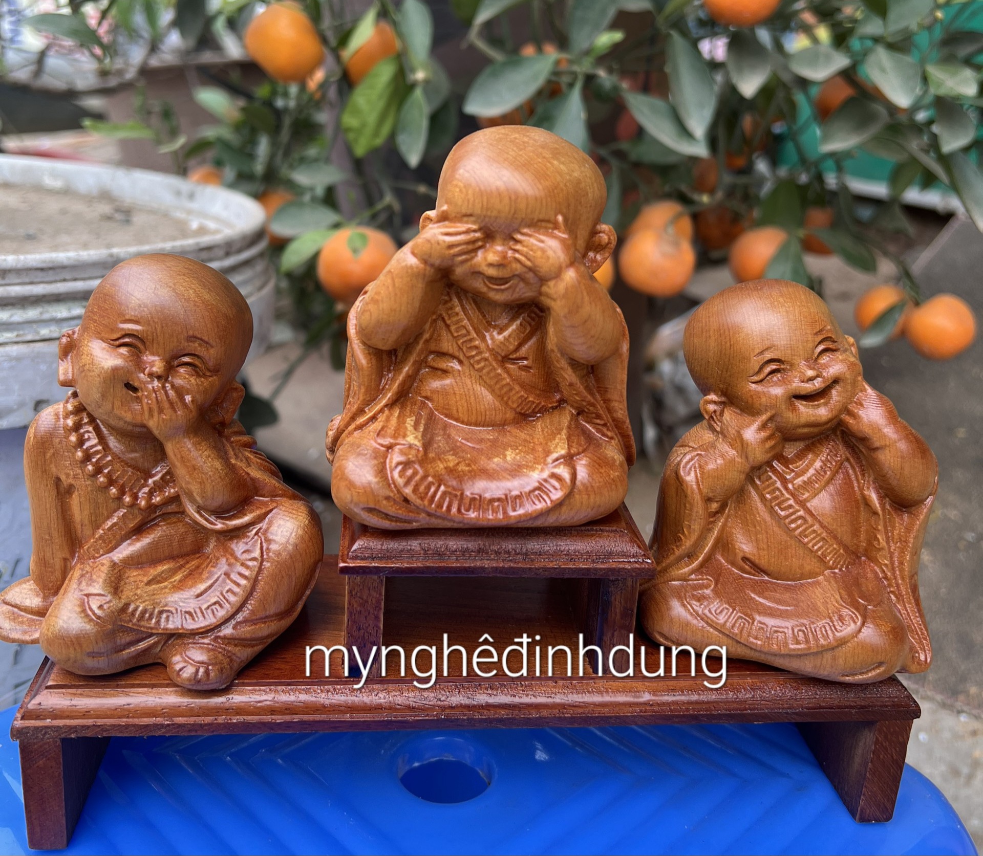 _ Bộ tượng tam không được làm bằng chất liệu gỗ bách xanh thơm phức liền khối thơm phức tự nhiên 100% _ Kt cao 13×9×8cm _ Bộ tượng tam không được điêu khắc trạm