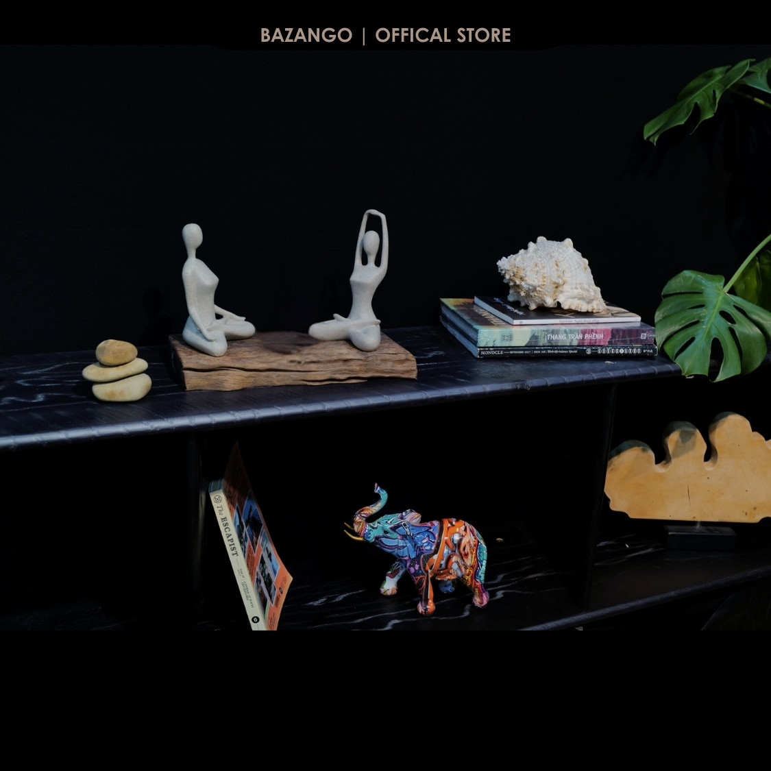 ✨Bô Tượng Yoga kèm đế gỗ và bộ đá "Zen" tự nhiên - Bazango - Trang Trí Nhà