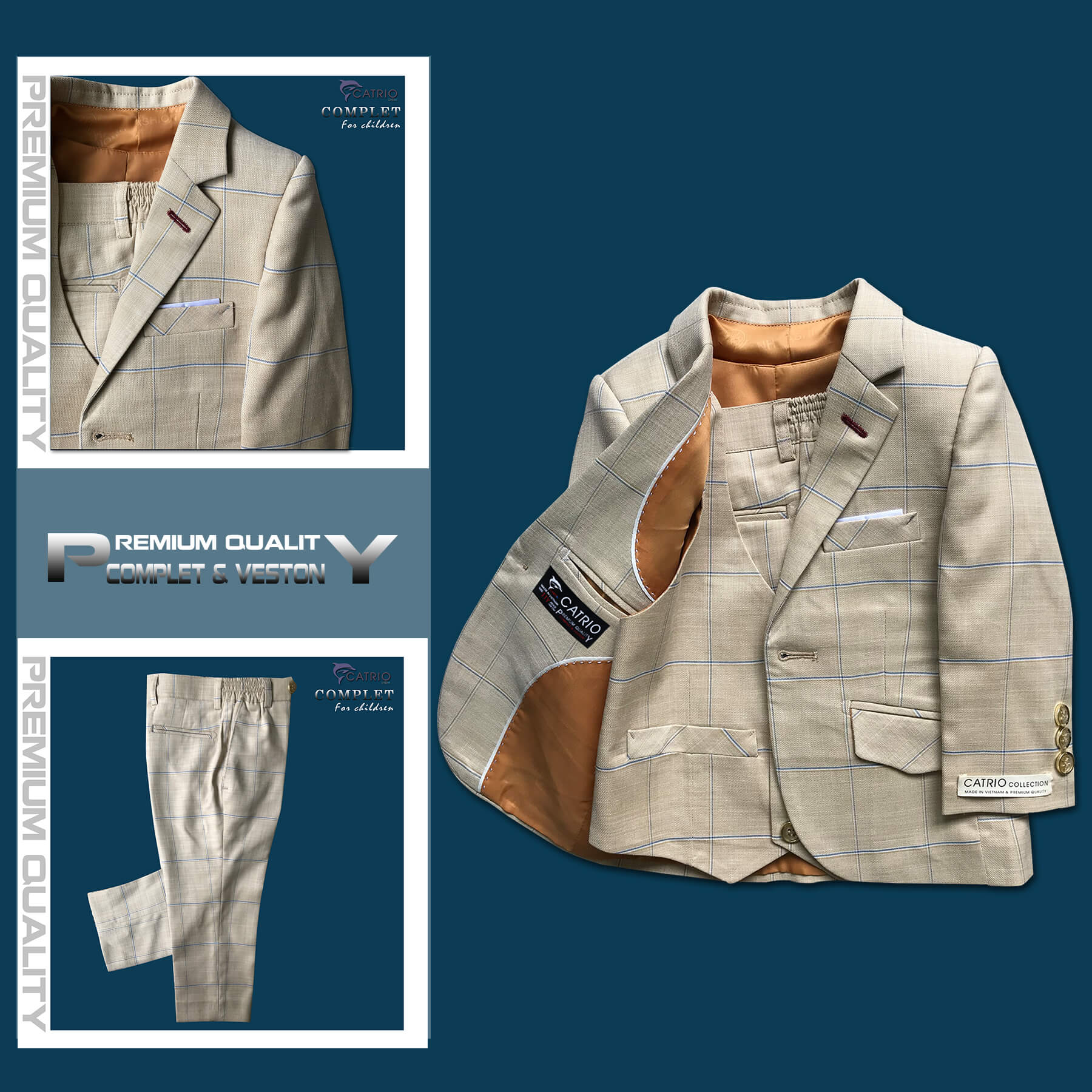 BỘ VEST BÉ TRAI CATRIO PCT E20 TỪ 2 TUỔI ĐẾN 7 TUỔI (11KG ĐẾN 27KG) THUỘC BST QUẦN ÁO COMPLET VESTON TRẺ EM CATRIO