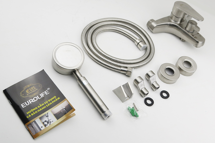 - Bộ sản phẩm được đóng gói trong túi vải cotton, hộp màu riêng của Eurolife. Bộ sản phẩm đầy đủ bao gồm : Thân củ sen, 2 chân quỳ ngoài, 2 roong cao su, 2 nắp che, 1 dây sen 150cm, 1 tay sen 5 chế độ chảy, 1 bát gật gù cài tay sen, 1 phiếu bảo hành chính hãng. THÔNG SỐ KỸ THUẬT Sản phẩm chất lượng cao, mang đến sự sang trọng và đẳng cấp cho phòng tắm vệ sinh. CHẤT LƯỢNG HÀNG ĐẦU Thương hiệu Eurolife Việt Nam là một thương hiệu uy tín hàng đầu trên thị trường Việt Nam với 12 năm kinh nghiệm Các sản phẩm Eurolife đạt nhiều chứng chỉ uy tín trong nước như :