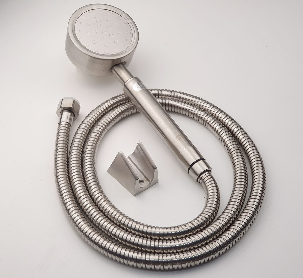 - Chân quỳ kết nối được đúc từ Inox SUS 304. Roong cao su chịu nhiệt, giúp sản phẩm không thể rò rỉ khi lắp đặt. Nắp che chân quỳ được làm từ Inox SUS 304 BỘ TAY DÂY SEN ĐI KÈM