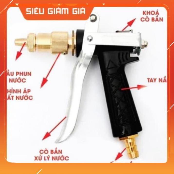 - Vòi phun có chức năng điều chỉnh lượng nước sử dụng tùy vào mục đích, từ tưới cây, rửa nhà cửa, cho đến rửa xe ô tô , xe máy, xe đạp... BỘ BAO GỒM 1 bộ vòi xịt tăng áp đầy đủ bao gồm:
