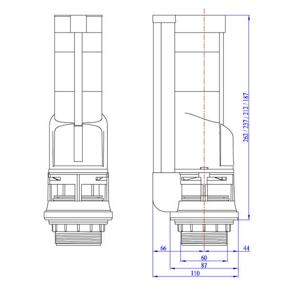 Bộ xả nước bồn cầu 2 khối rời loại tay gạt phía trước - bộ ruột xả nước bệt rời tay gạt