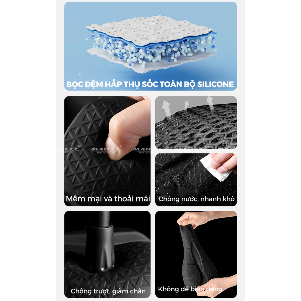 Mua tại TiktokBọc Đệm Xe Đạp Chống Đau Mông Cao Su GEL AIR lưới tổ ong mặt dưới cho đệm yên 28x17 cm, Mềm Chống Nước Địa Hình Phụ Kiện - Mai Lee Bọc Đệm Xe Đạp Silicon Chống Trượt Thoáng Khí Đạp Xe Ngoài Trời Phụ Kiện Khám phá Bọc Đệm Xe Đạp Silicon Chống Trượt, phụ kiện đạp xe ngoài trời lý tưởng với thiết kế thoáng khí và chống trượt vượt trội. Được làm từ silicon cao cấp, sản phẩm này mang lại cảm giác mềm mại, giảm áp lực và đau mông khi đạp xe dài, đồng thời giữ mát nhờ rãnh thông gió giữa đệm. Với độ đàn hồi cao và khả năng chống trượt mạnh mẽ, đây là lựa chọn hoàn hảo cho mọi chuyến đạp xe ngoài trời, từ địa hình đến đường trường!