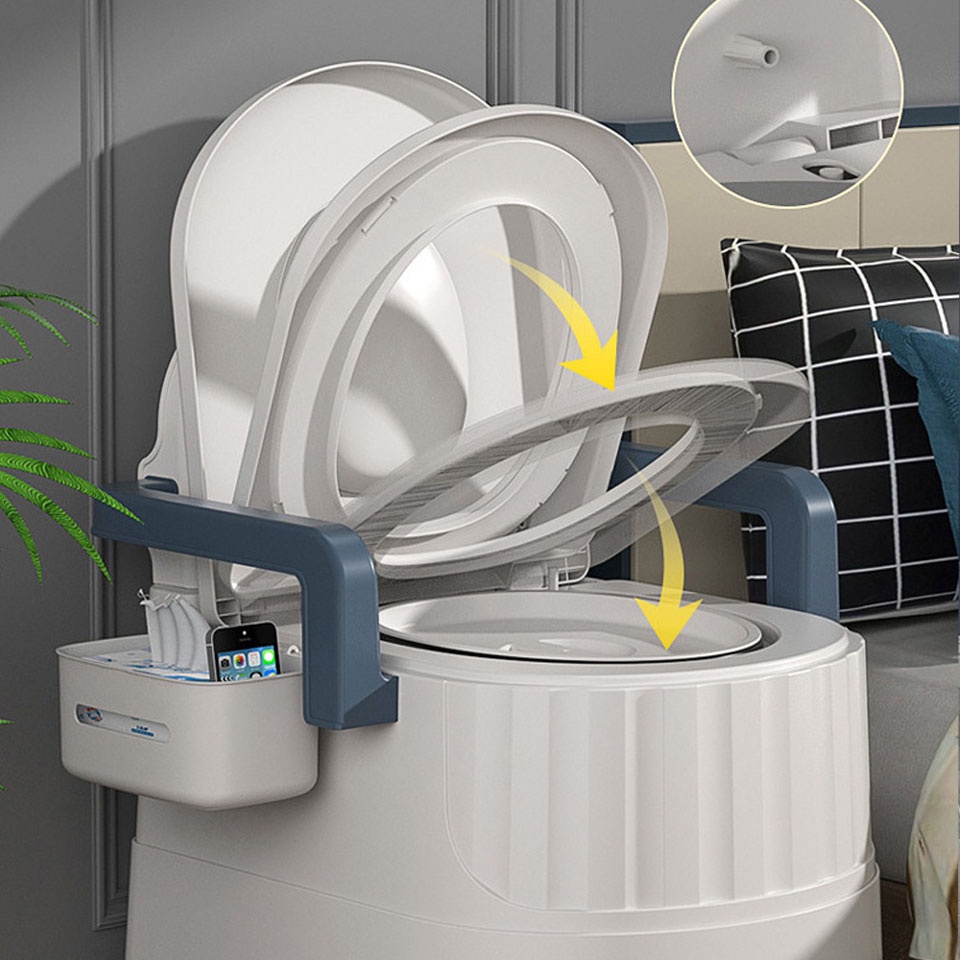 Bồn cầu di động chống mùi cho người già có tay vịn và tựa lưng chắc chắn toilet khử mùi