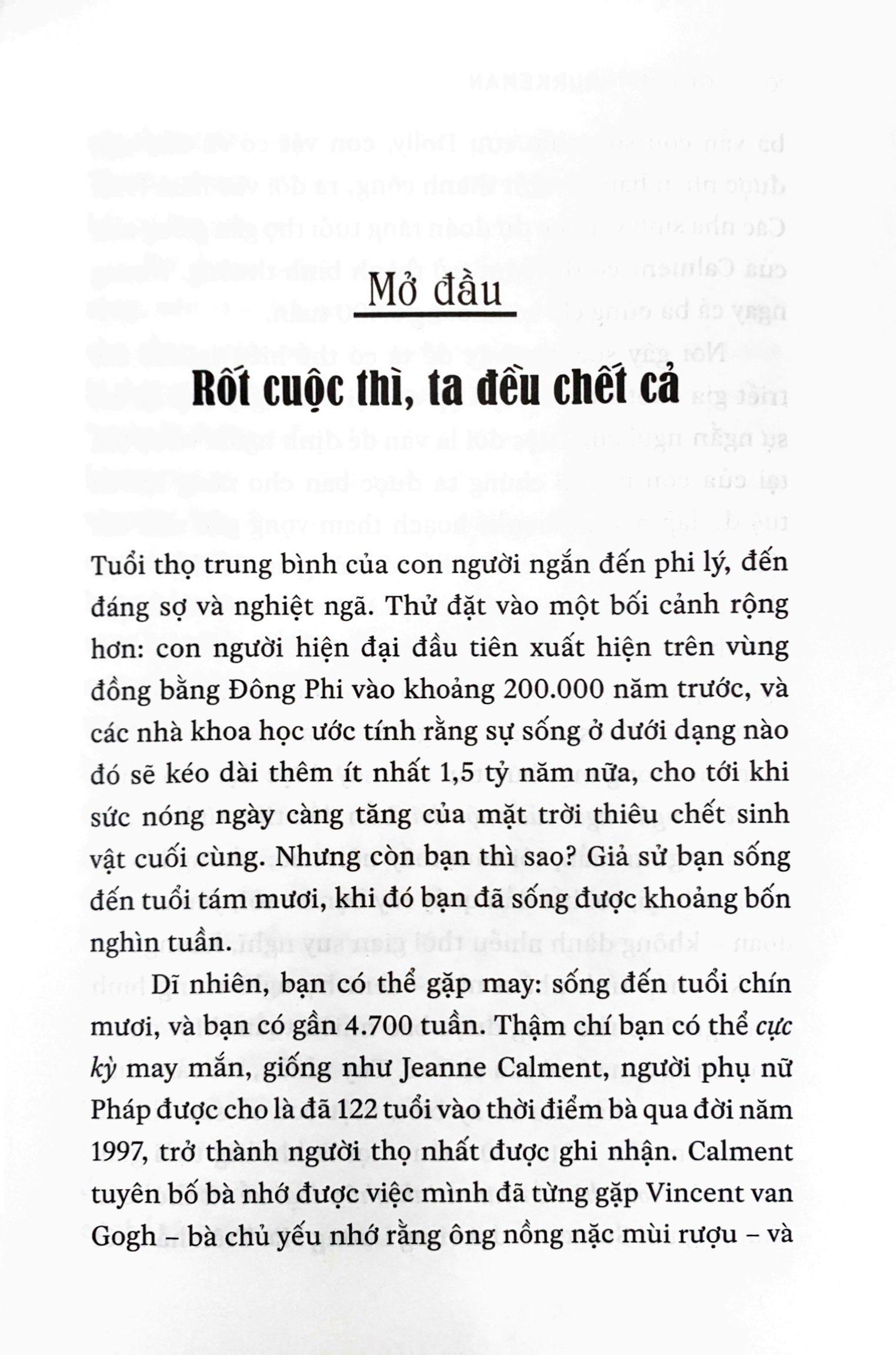 Tuổi thọ trung bình của con người ngắn đến phi lý, đến đáng sợ và nghiệt ngã… Giả sử bạn sống đến tuổi tám mươi, khi đó bạn đã sống được khoảng bốn nghìn tuần.