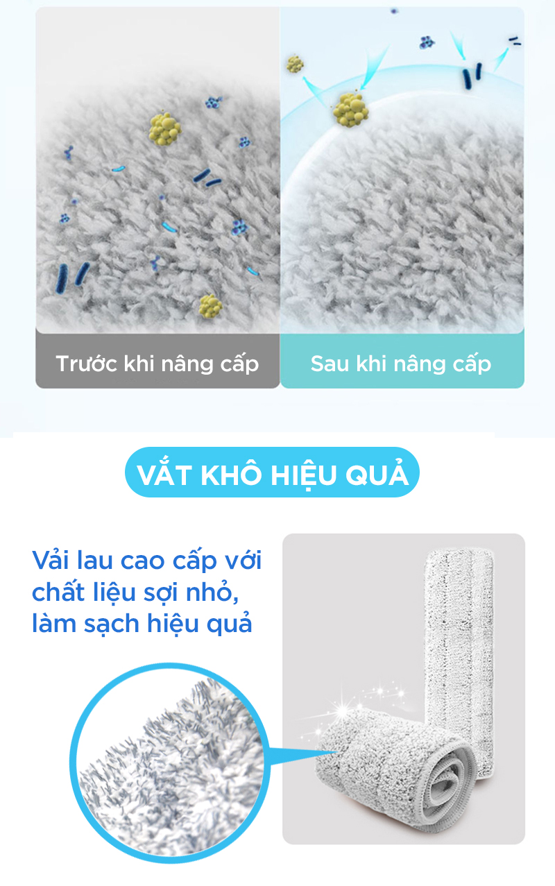 Bông lau thay thế cây lau nhà tự vắt 2 ngăn * Đặc điểm nổi bật: - Mỗi khi bông lau nhà bạn bị cũ, rách rưới, bạn thường phải đắng đo suy nghĩ phải