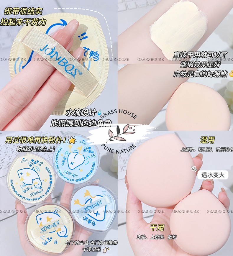 Mút Trang Điểm Ướt Và Khô Jonbos Đa Năng Tiện Dụng BÔNG PHẤN KHÔ JONBOS Xuất xứ: Trung Quốc Chất liệu: Cotton Kích thước: đường kính khoảng 6,5cm và dày 1,2cm (kích thước trung bình)
