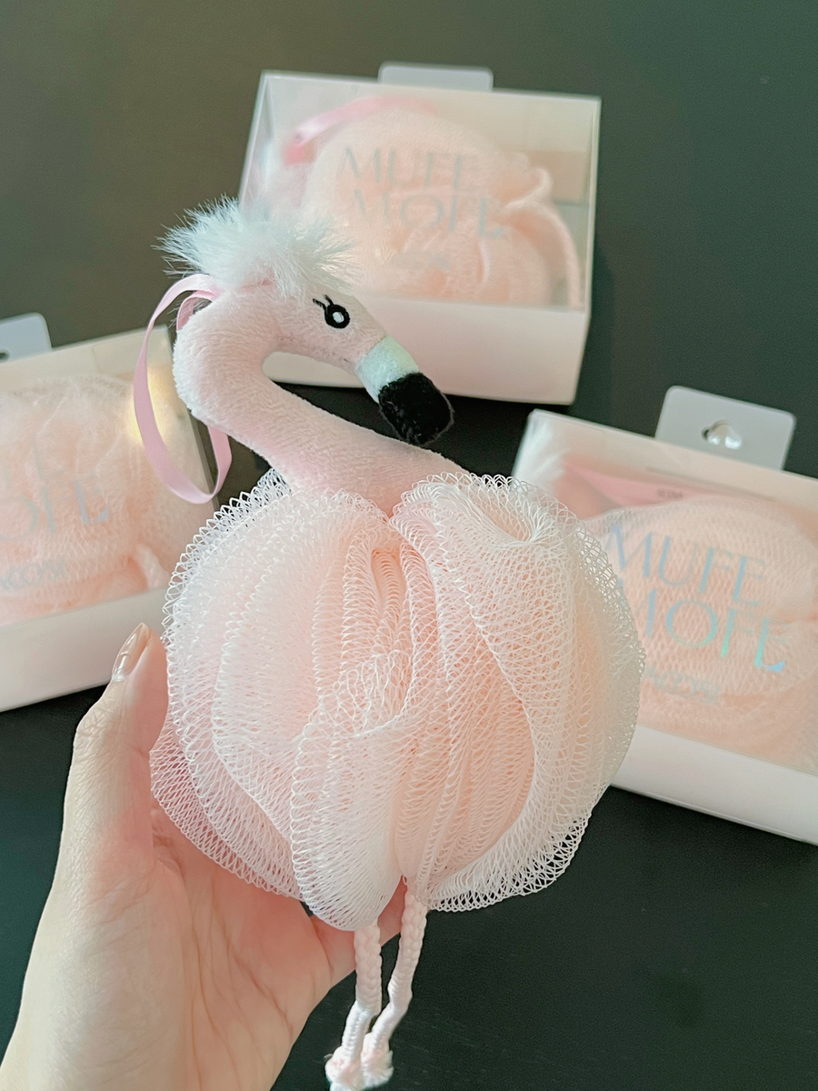 - Lấy cảm hứng từ Flamingo - loài hồng hạc xinh xắn đáng yêu, bông có quai treo dài cùng các chi tiết nhỏ dễ cầm nắm giúp thu hút sự chú ý của bé và tạo không khí hào hứng cho trẻ nhỏ trong hoạt động vệ sinh hằng ngày.