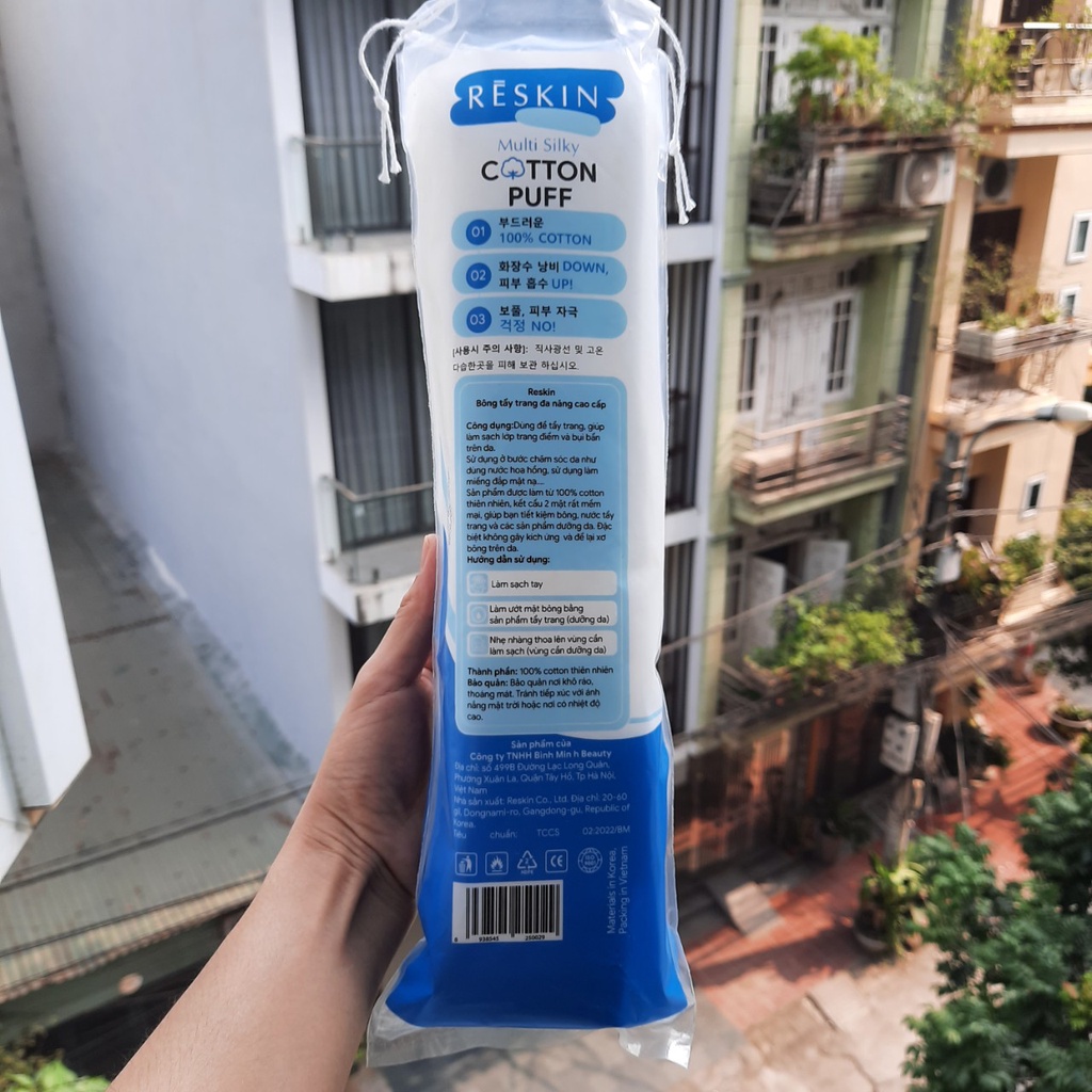 ✨Bông tẩy trang 3 lớp 2 mặt Cotton 180 miếng Reskin Multi Silky Cotton Puff - Không xơ bông trên da