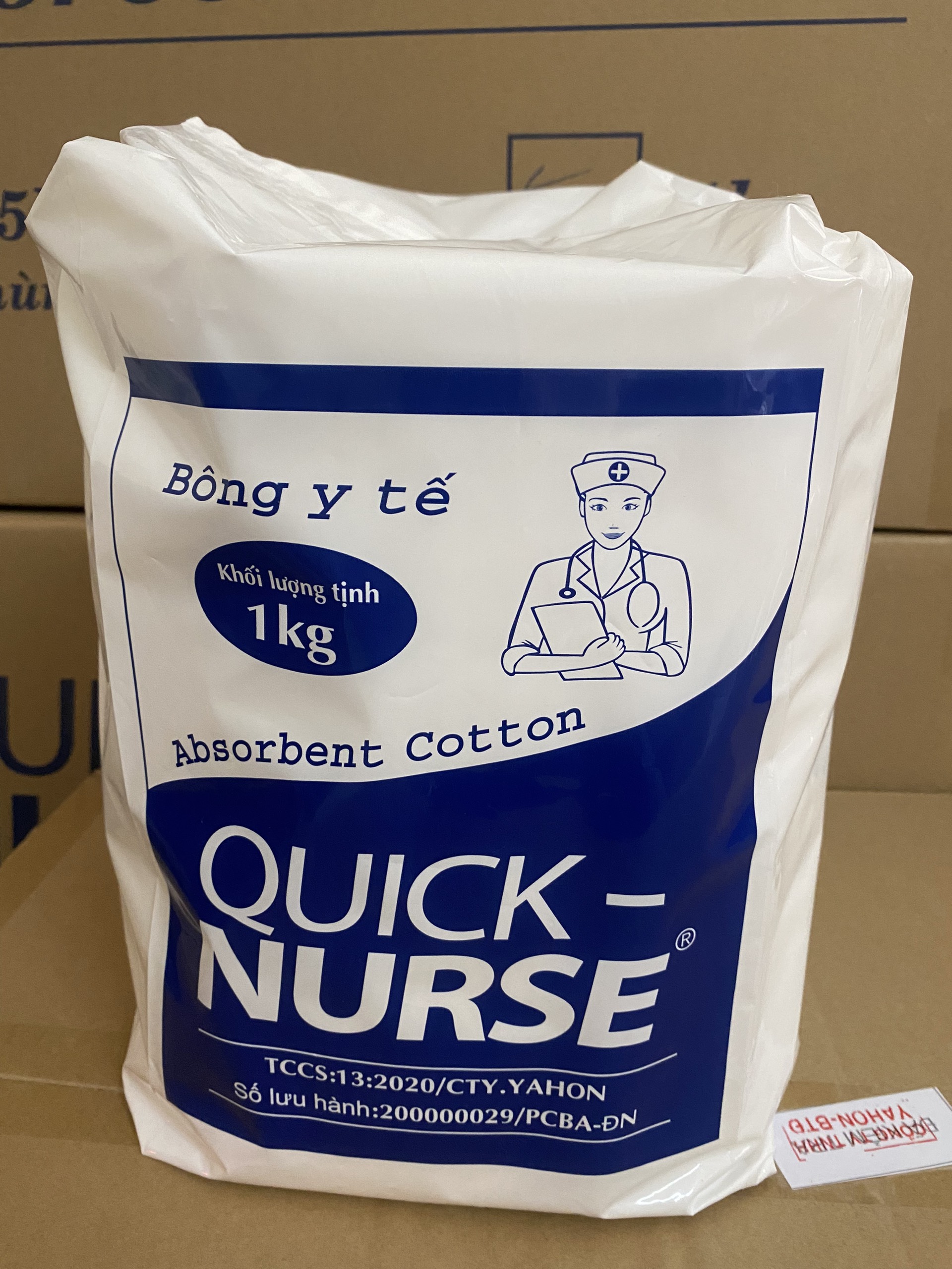 BÔNG Y TẾ QUICK-NURSE 500G Bông y tế Quick Nurse được sản xuất trên dây chuyền hiện đại, đáp ứng tiêu chuẩn ISO 9001:2015 và chứng chỉ CGMP. Với thành phần 100% cotton, quy cách