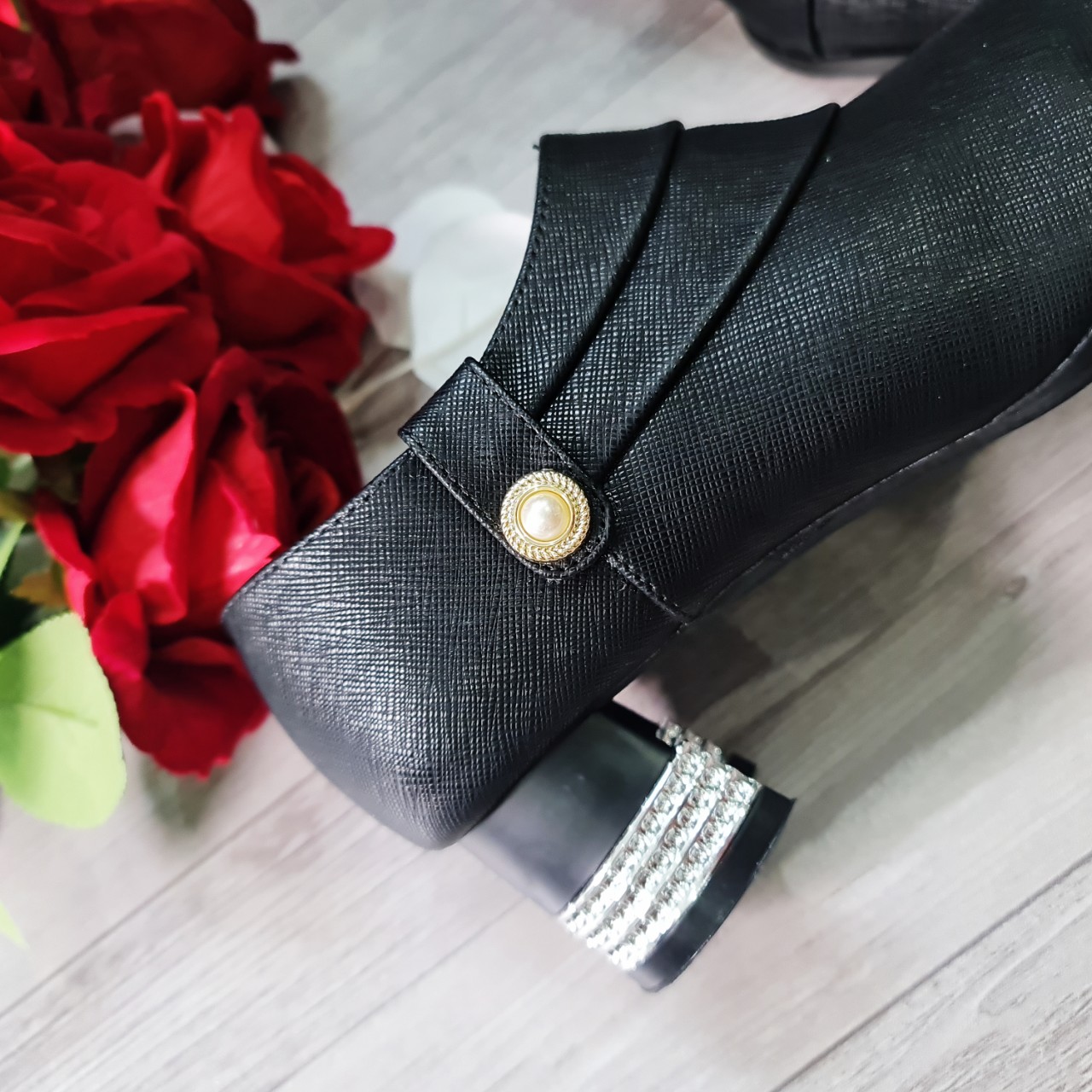 ROSATA - thương hiệu giày thời trang nữ cao cấp THUẦN VIỆT NHƯNG CHẤT LƯỢNG QUỐC TẾ ---- Giày bốt nữ cổ ngắn màu đen 4p RO308 ROSATA tại BCASHOP khóa nút tiện lợi, mùi