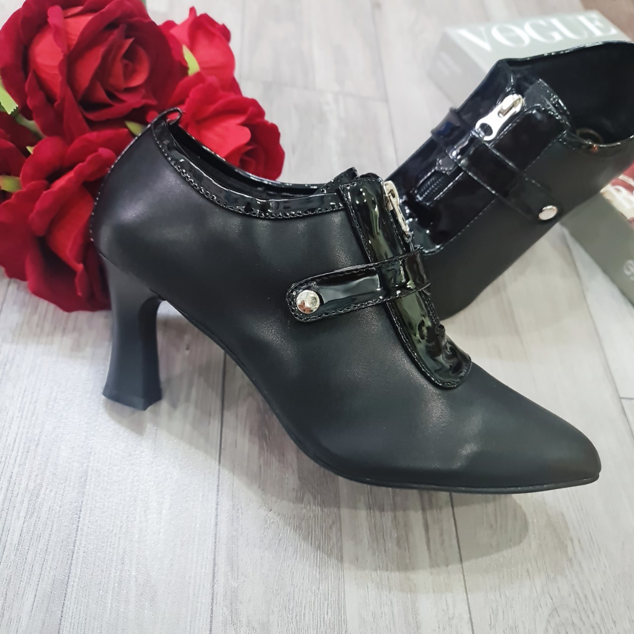 ROSATA - thương hiệu giày thời trang nữ cao cấp THUẦN VIỆT NHƯNG CHẤT LƯỢNG QUỐC TẾ ------------------ Giày bốt nữ cổ thấp gót cao 8p RO607 ROSATA tại BCASHOP màu đen thiết kê đơn