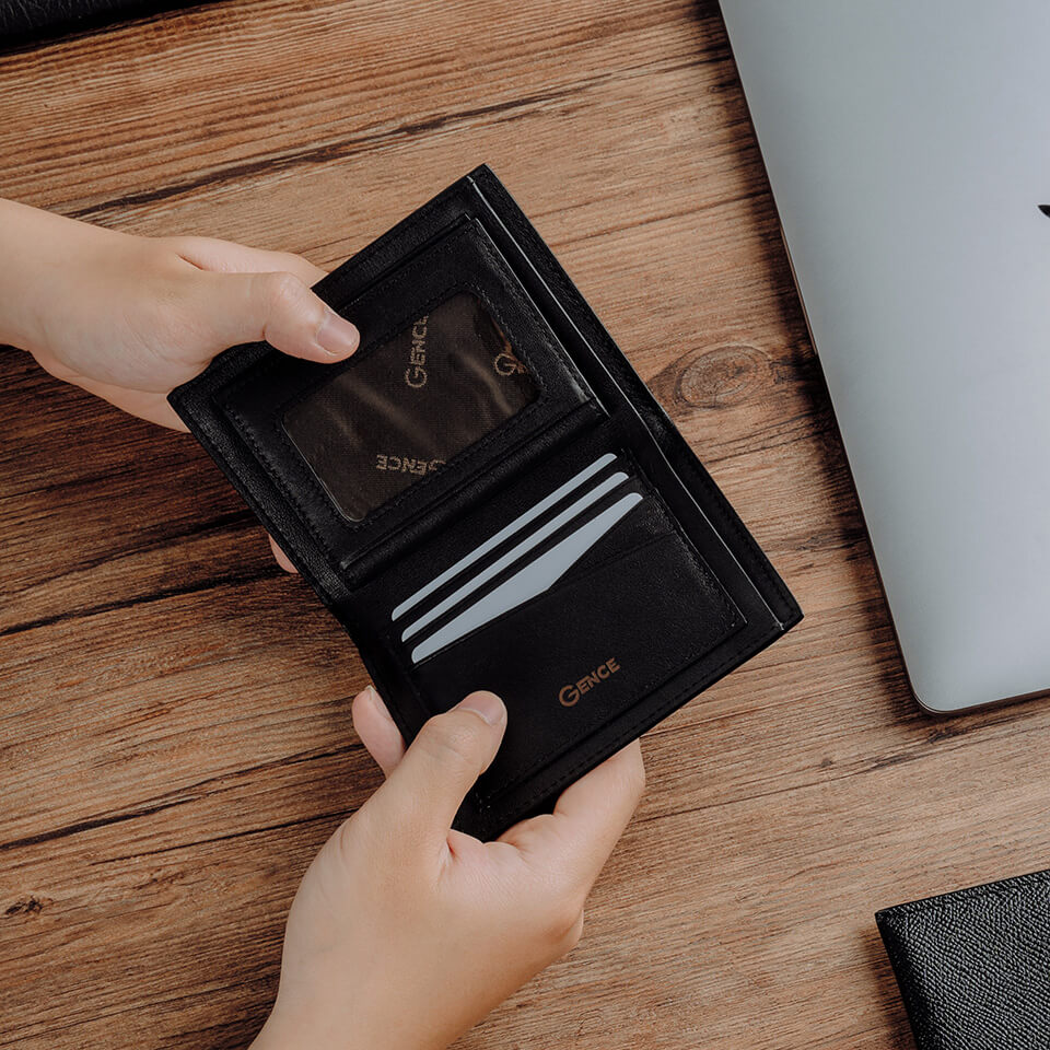 ✨Bóp Nam Chính Hãng Ví Da Nam GENCE C09 Chất Liệu Da Bò Cao Cấp Màu Đen Dáng Dọc