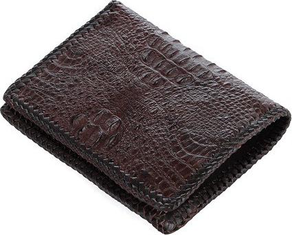 ✨Bóp nam Huy Hoàng da cá sấu nguyên con đan viền kiểu đứng màu nâu đất HT2763