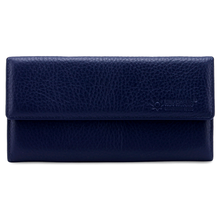 Ví/Bóp nữ da bò Huy Hoàng cao cấp 3 gấp màu xanh đậm 3139