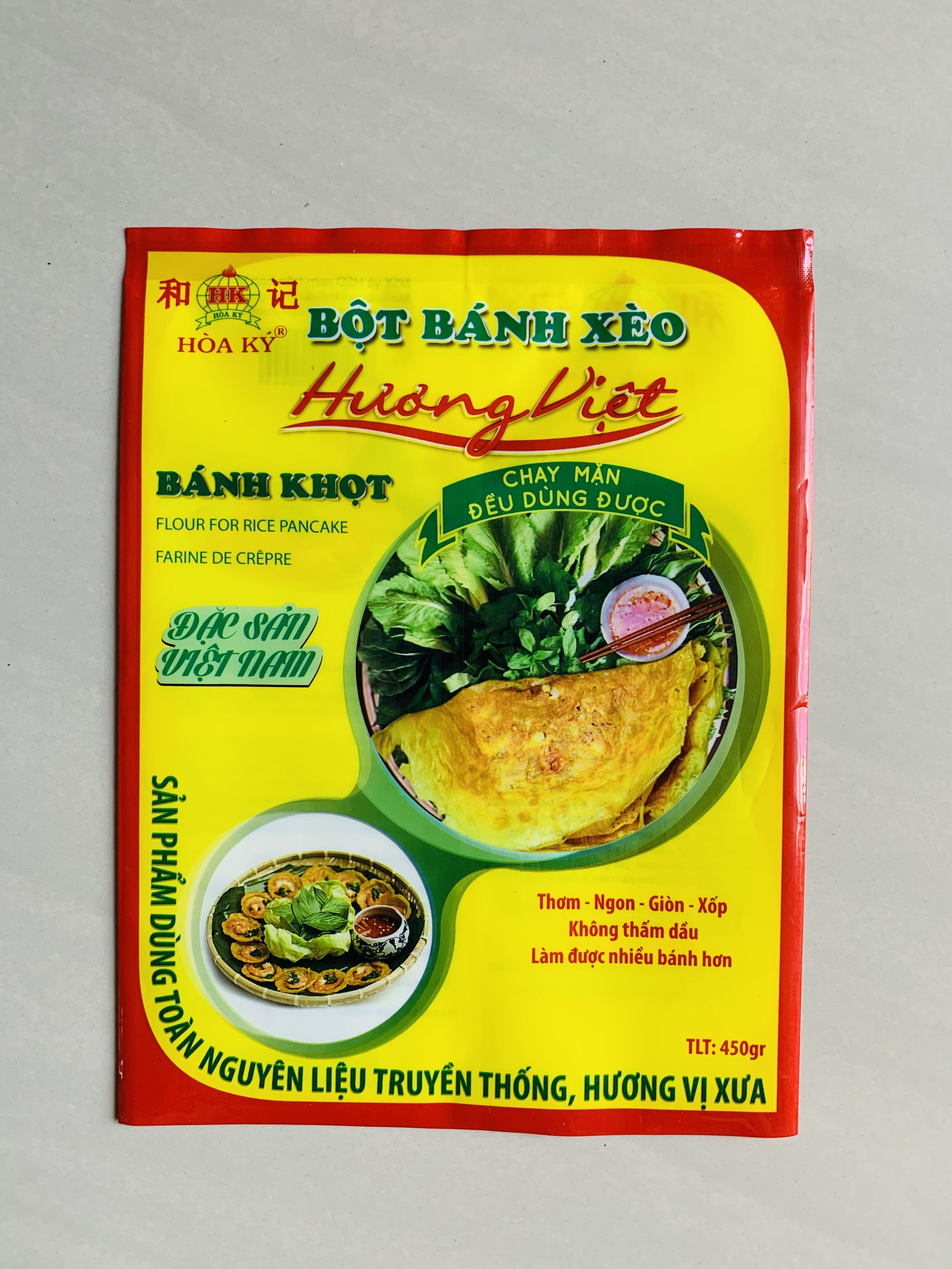 Hướng dẫn sử dụng: Bước 1 : Cho khoảng 900gr nước (hay nước cốt dừa) vào bột bánh xèo khuấy cho đều, có thể nêm gia vị theo sở thích.Bước 2 : Đun nóng chảo, cho 1 muỗng dầu ăn, thịt ba rọi heo, tôm ho...