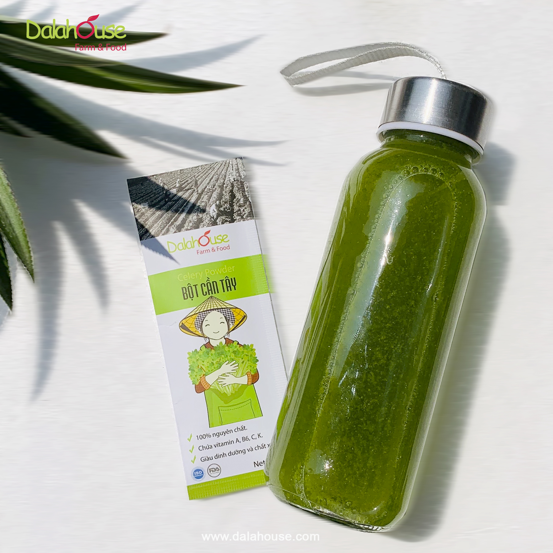 Bột Cần Tây Sấy Lạnh Nguyên Chất Dalahouse 60g, Công Nghệ Sấy Lạnh Tiêu Chuẩn Châu Âu, Da Sáng, Dáng Thon, Thanh Lọc Cơ Thể, Hàng Chính Hãng 1 ly bột rau cần tây mát lành mỗi sáng sẽ mang lại một ngày làm việc thật sảng khoái và hiệu quả. Sản phẩm thật sự phù hợp với người làm việc văn phòng và những người không có thời gian ép nước cần tây tươi mỗi sáng. Bột rau cần tây Dalahouse sấy lạnh giữ đủ dưỡng chất là sản phẩm thay thế rau cần tây tươi, chỉ với 15 giây sẽ có ngay ly cần tây mát lành với đầy đủ dinh dưỡng giúp chăm sóc sức khỏe từ bên trong (15 giây là thời gian lấy bột, pha nước và khuấy đều). THÔNG TIN SẢN PHẨM BỘT CẦN TÂY: