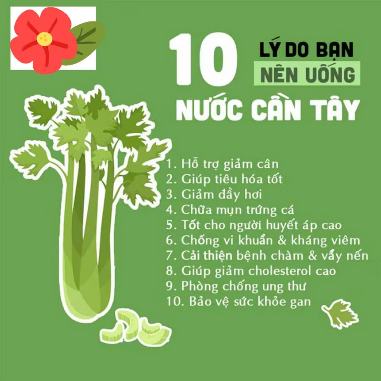 Sản phẩm nguyên chất 100% từ cần tây tươi, không chất bảo quản, không chất phụ gia. Sản phẩm được dùng thay thế cho cần tây tươi.