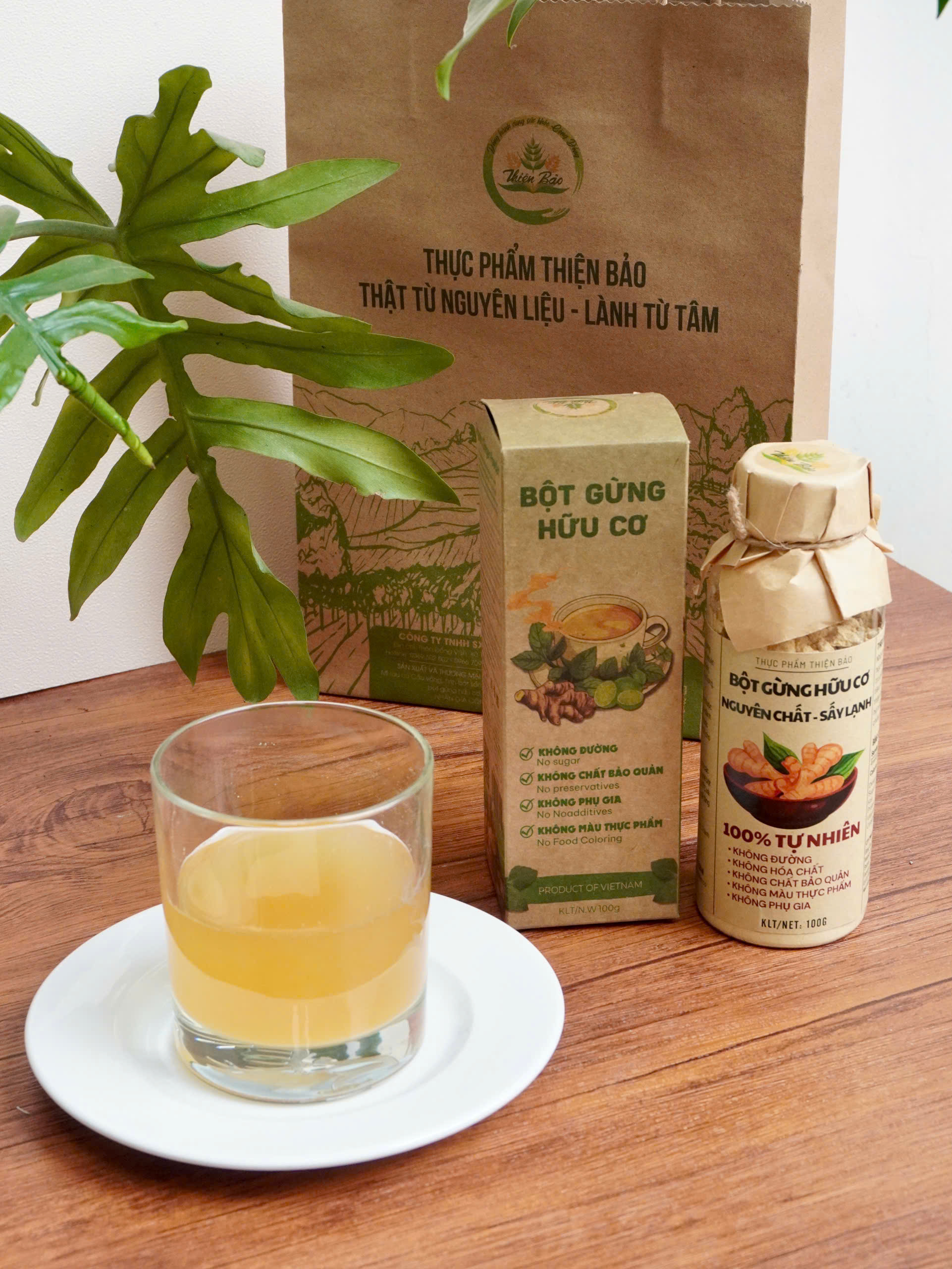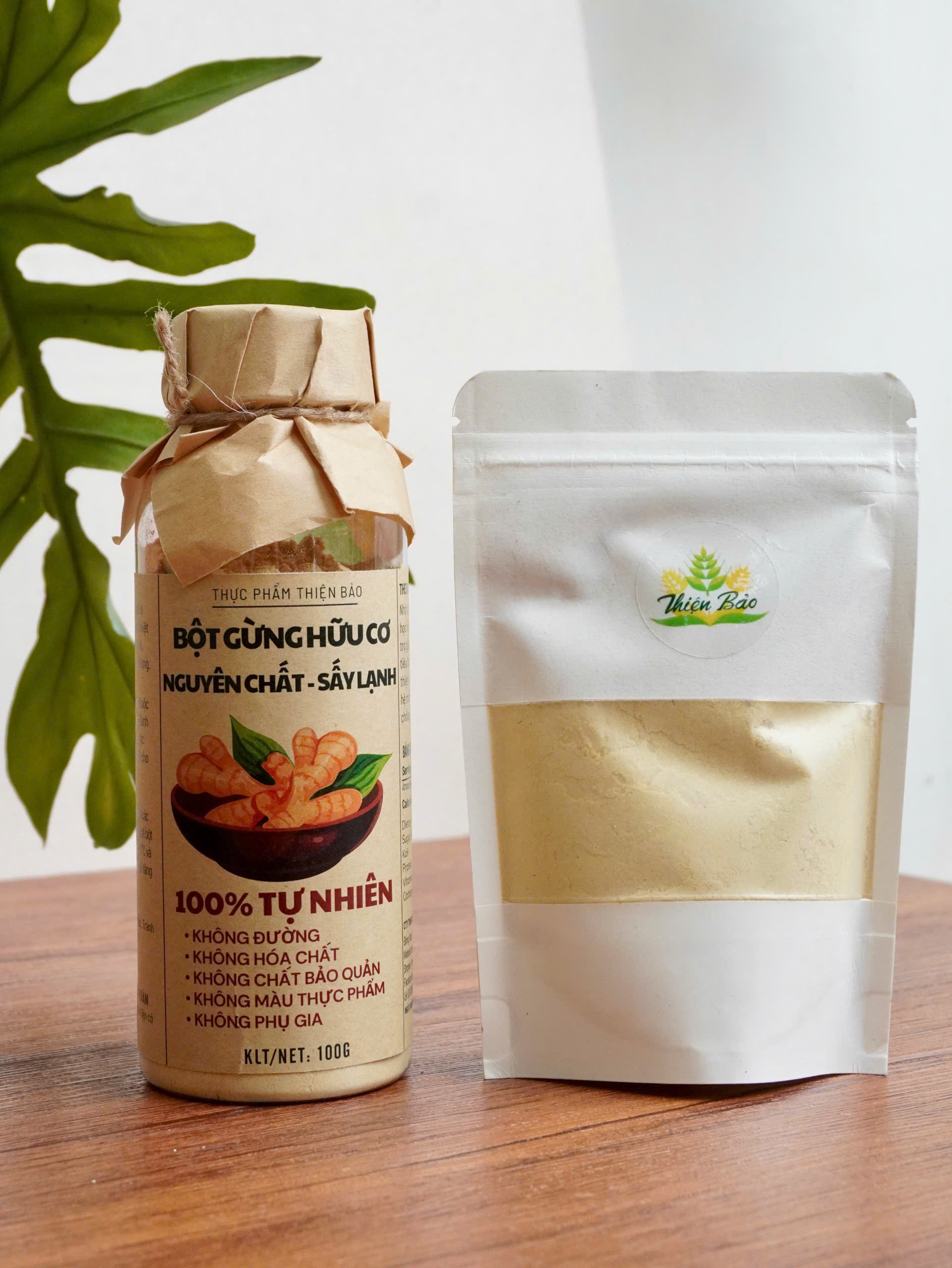 BỘT GỪNG THIỆN BẢO – NGUYÊN CHẤT 100%, SẤY LẠNH, SIÊU MỊN Sản phẩm hữu cơ – Không đường – Giữ trọn dưỡng chất Giữ ấm cơ thể, hỗ trợ tiêu hóa, giảm đầy hơi Tăng cường miễn dịch, giảm ho, cảm cúm, tốt cho sức khỏe Hỗ trợ giảm cân, thúc đẩy trao đổi chất Dễ dàng pha trà, kết hợp mật ong, dùng nấu ăn, làm đẹp Cam kết chất lượng: Bột gừng nguyên chất từ củ gừng tươi, sấy lạnh công nghệ cao, không tạp chất, không chất bảo quản. Quy cách: 100g (Đóng gói tiện lợi, bảo quản dễ dàng) Giao hàng nhanh – Đảm bảo chất lượng – Hỗ trợ đổi trả   Gừng là một trong những loại gia vị lành mạnh nhất trên thế giới. Nó có vô số chất dinh dưỡng và các hợp chất hoạt tính sinh học có lợi ích mạnh mẽ cho cơ thể.       Gừng là một trong những loại gia vị lành mạnh nhất trên thế giới. Nó có vô số chất dinh dưỡng và các hợp chất hoạt tính sinh học có lợi ích mạnh mẽ cho cơ thể và não của bạn.   Chúng tôi cam kết đảm bảo sự an toàn cho sức khỏe của bạn bằng cách:Không sử dụng thuốc trừ sâu, hóa chất, màu thực phẩm, và chất bảo quản độc hại trong quá trình sản xuất.Điều này giúp bạn yên tâm sử dụng sản phẩm hằng ngày mà không lo lắng về tác động tiêu cực từ hóa chất. Sản xuất và chế biến dây chuyền hiện đại. Gừng được sấy lạnh ở nhiệt độ thấp, giúp gừng giữ nguyên dược tính, màu sắc, hương vị tốt nhất.