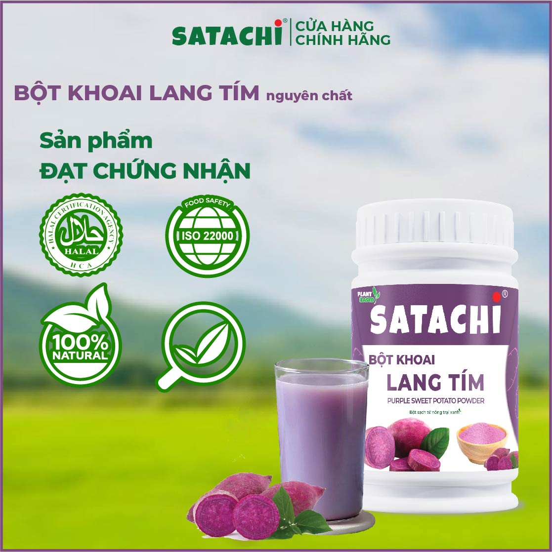 - Khách hàng luôn nhận được Sản Phẩm có Ngày Sản Xuất trong vòng 6 tháng tính từ ngày sản xuất. Bột Khoai Lang Tím nguyên chất SATACHI là dòng Sản Phẩm có nguồn dinh dưỡng dồi dào, được INSECT VIETNAM gieo trồng bằng phân bón hữu cơ G.Frass từ côn trùng. Bột Khoai Lang Tím nguyên chất SATACHI đạt: