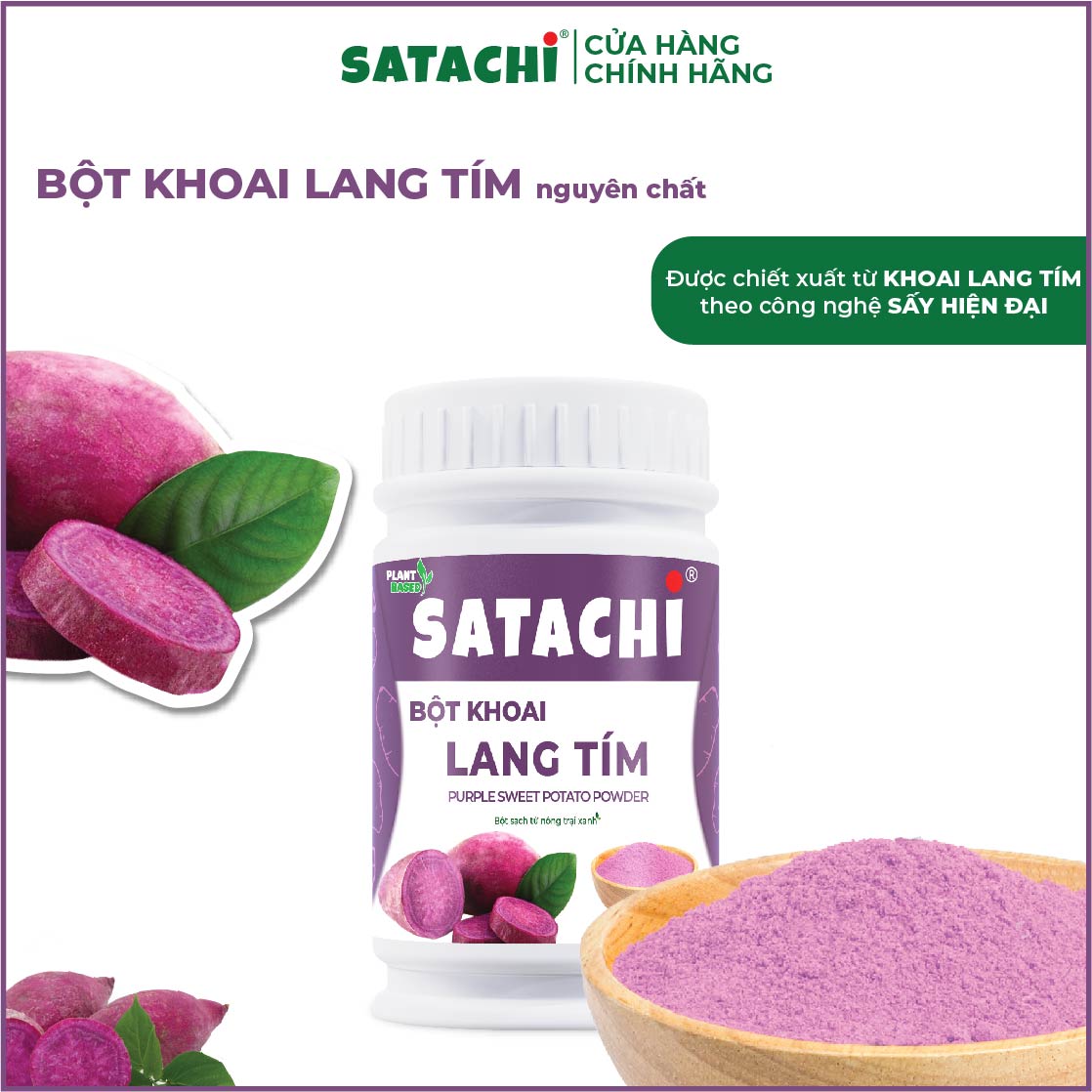 - Không chất tạo bọt SATACHI sử dụng hệ thống máy sấy công nghiệp hiện đại, giữ trọn các dưỡng chất tối ưu, hương vị, … có trong Bột Khoai Lang Tím. Bột Khoai Lang Tím nguyên chất SATACHI: