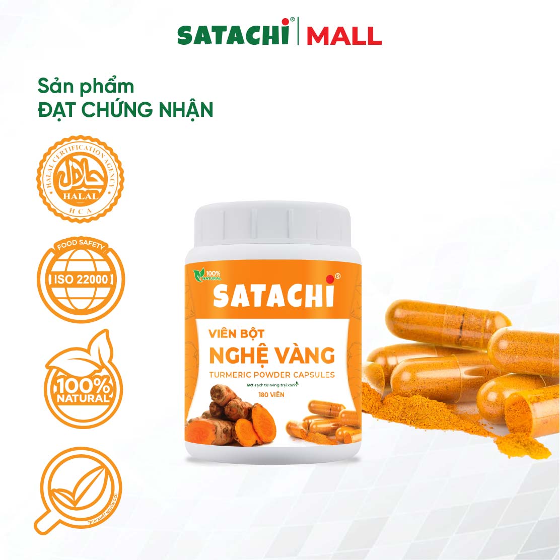 ✨Viên Bột Nghệ Nguyên Chất SATACHI – 100% Nghệ – Dạng Viên Tiện Lợi – Hộp 180 viên