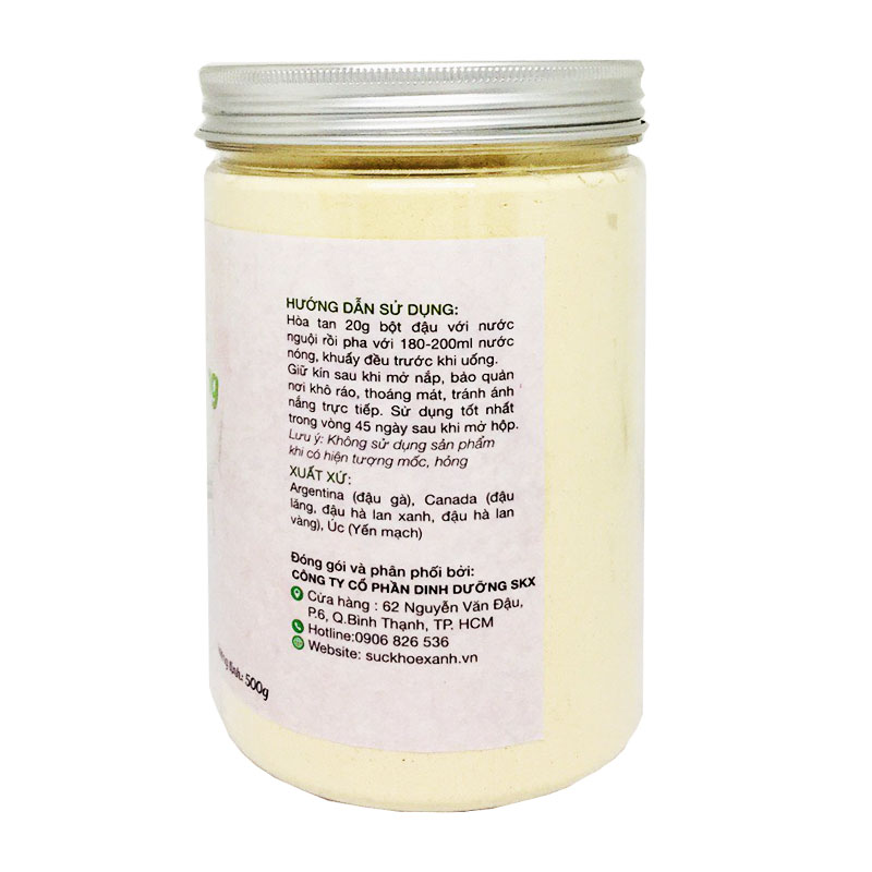 Ngũ cốc dinh dưỡng SKX gồm 5 loại bột đậu và ngũ cốc nguyên chất 100% nhập khẩu từ nước ngoài, đã được rang chín: đậu gà, đậu lăng đỏ, đậu hà lan vàng, đậu hà lan xanh, yến mạch. Sản phẩm đặc biệt hoàn toàn không sử dụng hương liệu, chất tạo màu, chất bảo quản.