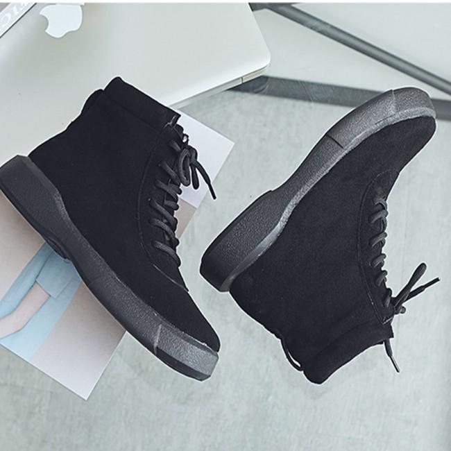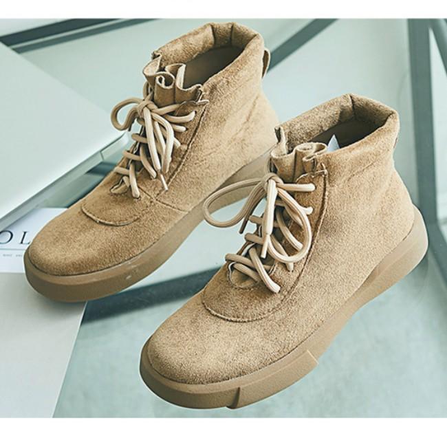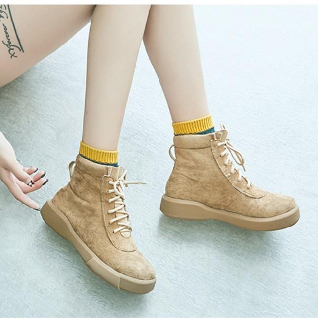 Giày bốt nữ cao cổ da mềm đế bẹt