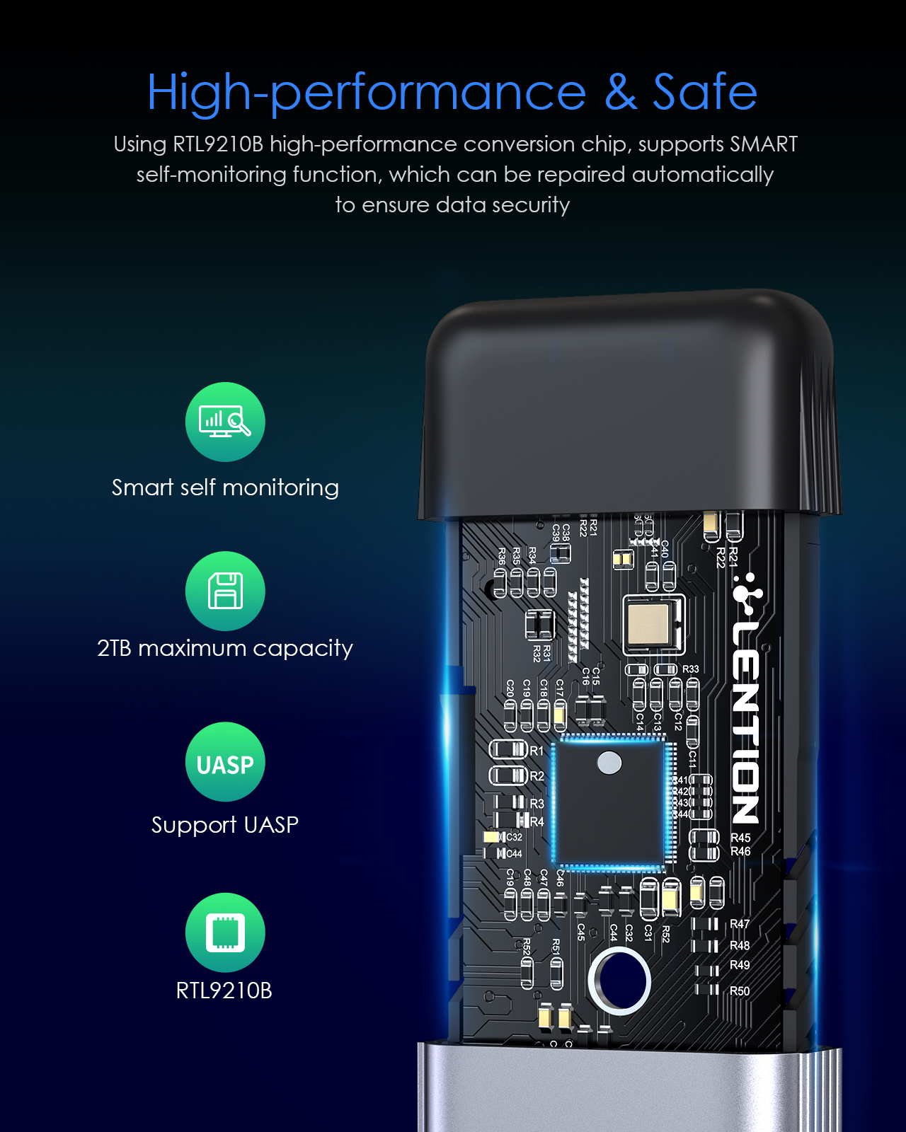 Mua tại TiktokBox ổ cứng SSD M2 NVMe 0.15m Lention C9Elite NVMe(M.2) SSD Case with 0.15m USB-C Cable Biến SSD M2 NVMe thành ổ cứng di động