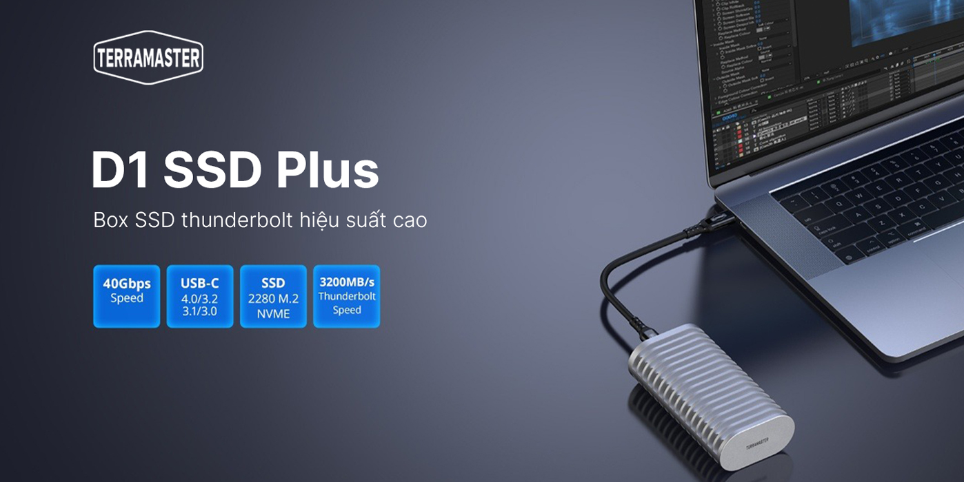 Phần lớn các thiết bị hiện đại như laptop siêu mỏng, macmini có dung lượng lưu trữ cố định (Không nâng cấp dung lượng được). TerraMaster D1 SSD Plus có thể hỗ trợ việc nâng cấp dung lượng lưu trữ dễ dàng mà vẫn đảm bảo tốc độ truyền dẫn. Đây là thiết bị DAS di động mới nhất của TerraMaster, hoạt động như một box SSD thunderbolt tốc độ cao, đi kèm công cụ sao lưu dữ liệu thông minh, giúp đảm bảo an toàn cho các dữ liệu quan trọng của bạn.