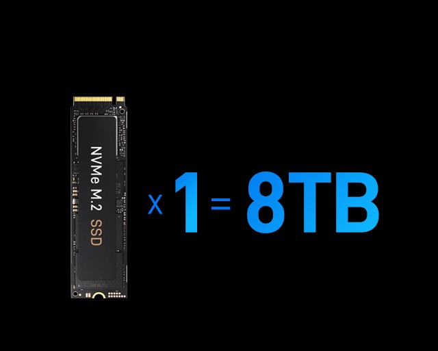 Hỗ trợ nhiều loại ổ cứng SSD PCIe M.2 2280 NVMe, với dung lượng lên tới 8TB, đáp ứng nhiều nhu cầu mở rộng lưu trữ khác nhau.
