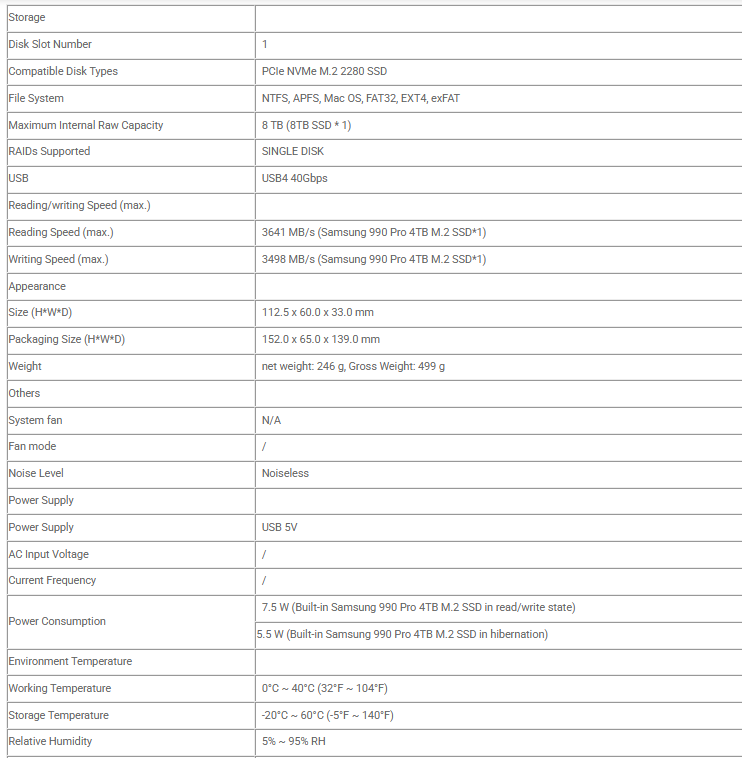 - Chuẩn USB4 tốc độ cao – truyền tải dữ liệu lên tới 40Gbps - Hỗ trợ ổ NVMe M.2 PCIe Gen 3/4 – tối ưu hiệu suất ổ cứng - Vỏ nhôm nguyên khối